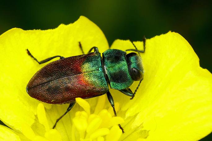Anthaxía salicis auf Hahnenfuß-Blüte, Dresden, Juli 2013