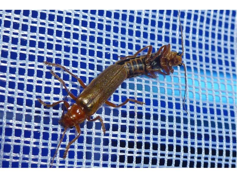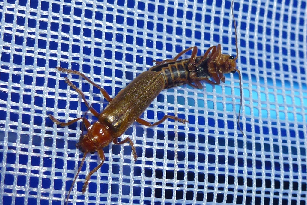 Thorax: Halsschild orange, Flügeldecken vorn orange-braun, die hinteren zwei Drittel dunkelbraun. Beine durchweg orange-braun.