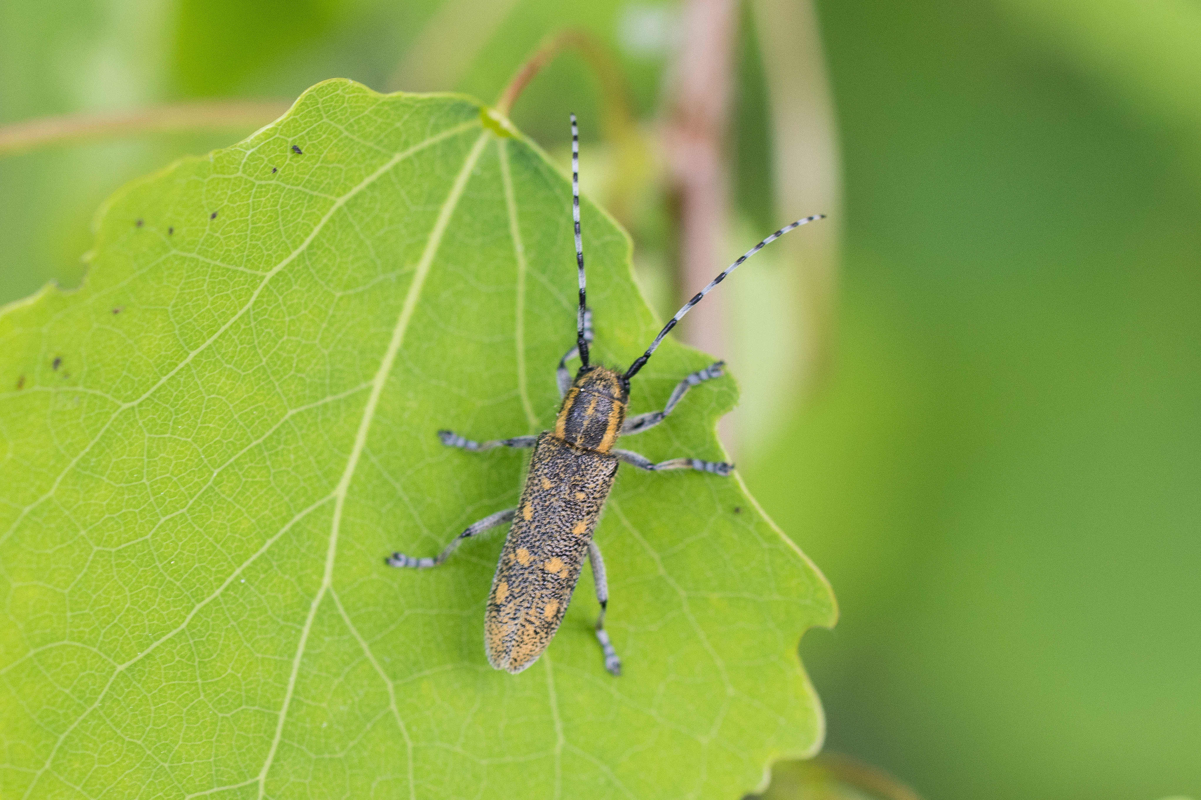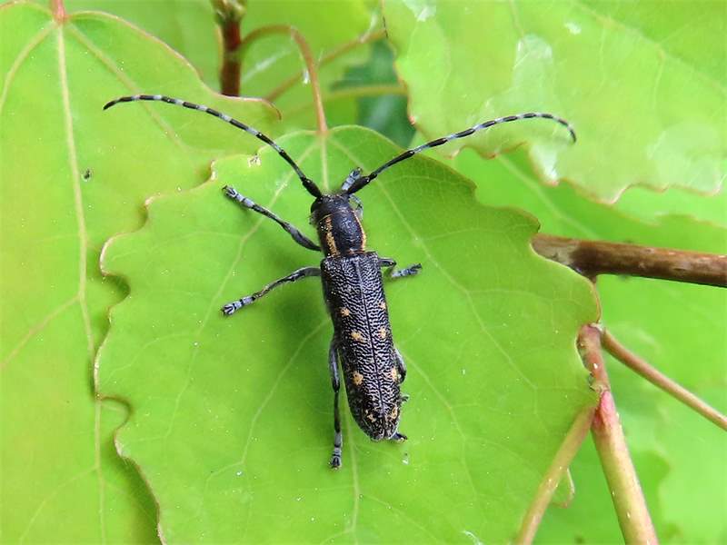 Thorax: Flügeldecken leicht gelb tomentiert, mit jeweils vier bis fünf dichten, gelben Flecken, die in gebogenen Längsreihen angeordnet sind. Die Flecke sind variabel.