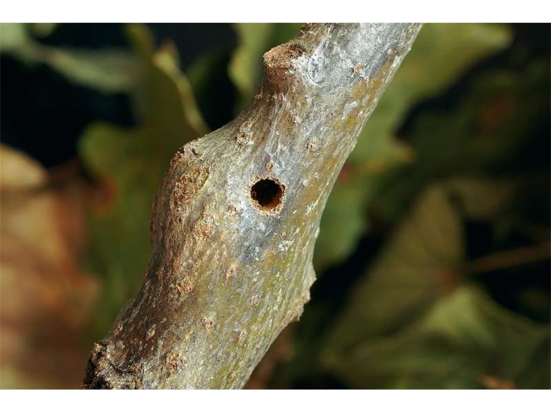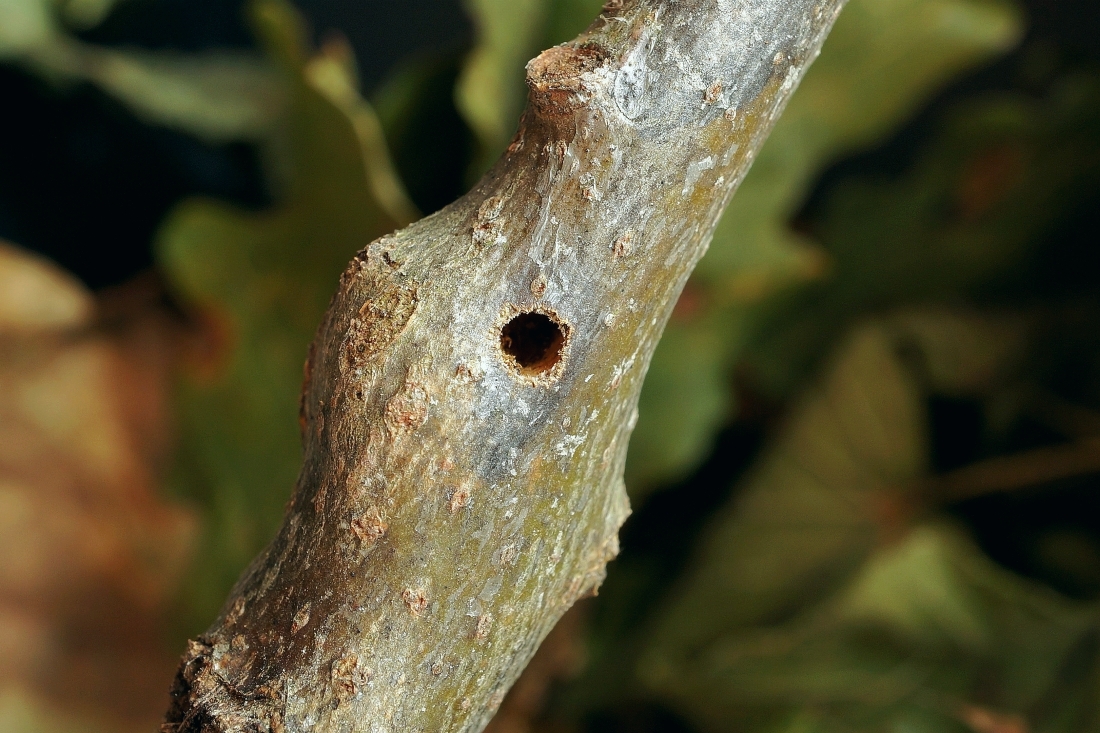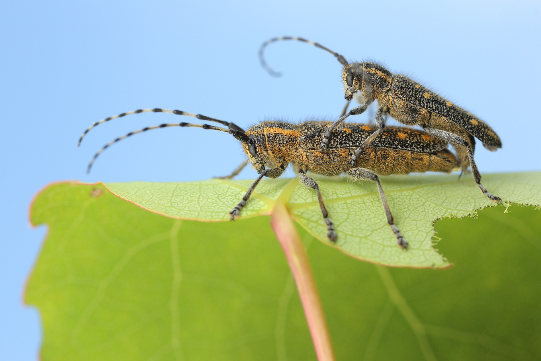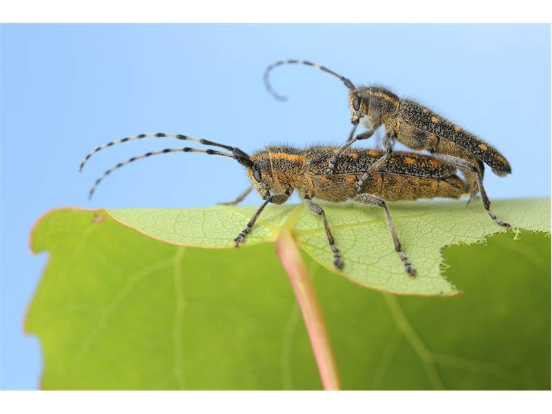 Die Weibchen betreiben Brutfürsorge, in dem sie die Larvennahrung fördern. Mit den Mandibeln nagen die Weibchen flache Querfurchen in die Rinde, anschließend unterhalb dieser ein Loch, das bis in den Splint reicht. Ausgehend von dem Loch werden zwei bogenförmige, nach oben gerichtete Rindenschnitte angelegt, so dass ein hufeisenförmiges Muster entsteht. Anschließend wird das Ei abgelegt. Das Pflanzengewebe verfärbt sich um die Eiablagestelle schwarz und reagiert mit gallenartiger Wucherung, die der inzwischen geschlüpften Larven als Nahrung dient (Beutel 2003).