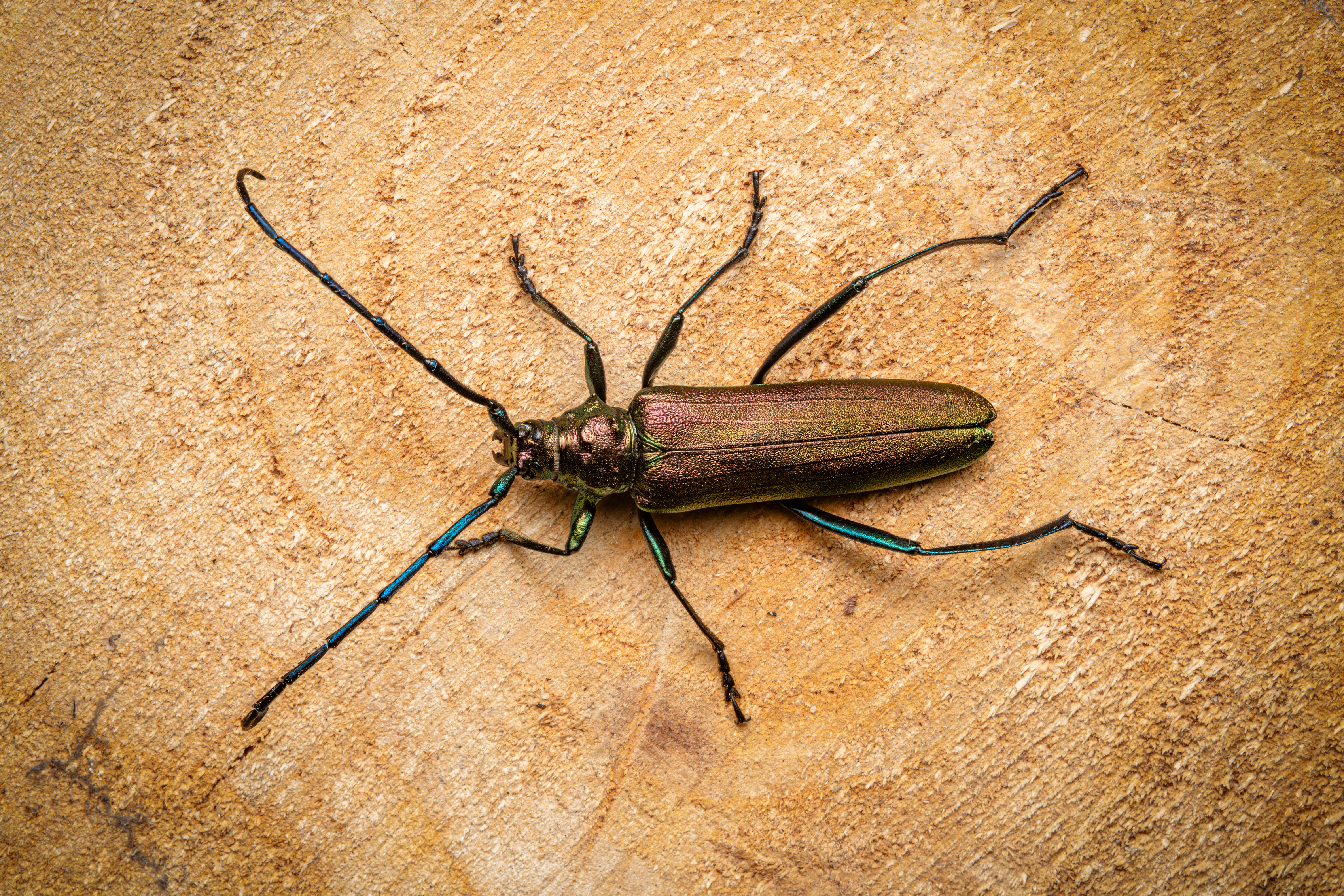 Aromia moschata unterscheidet sich von anderen Bockkäfern durch die skulpturierte (gerunzelte) Halsschildoberseite und die metallisch grüne oder blaue, seltener auch rote Färbung, des gesamten Körpers.