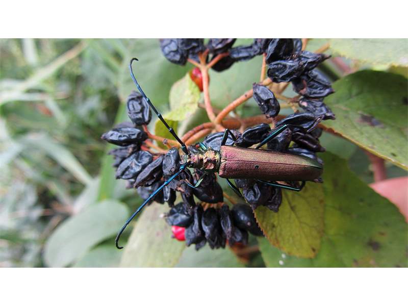 Moschusbock (Aromia moschata (Linnaeus, 1758)), Elsteich in Hohenprießnitz 10.08.2013 (© Michael Happ)( Bild vergrößern)
