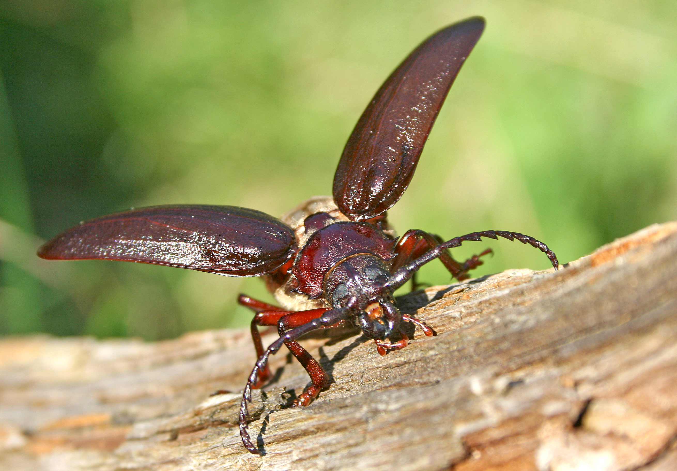 Fühler der Männchen stark "gesägt", die der Weibchen wesentlich dünner, jedoch bei beiden ohne spitze Dornen.