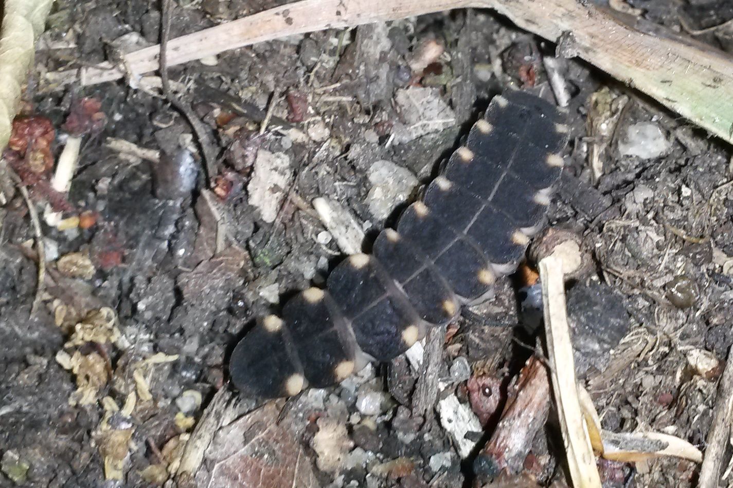 Weibchen des Großen Leuchtkäfers. Hohenprießnitz, Wegrain der Südallee südlich des Ortes. Ende Juli 2016. (© Michael Münch)( Bild vergrößern)