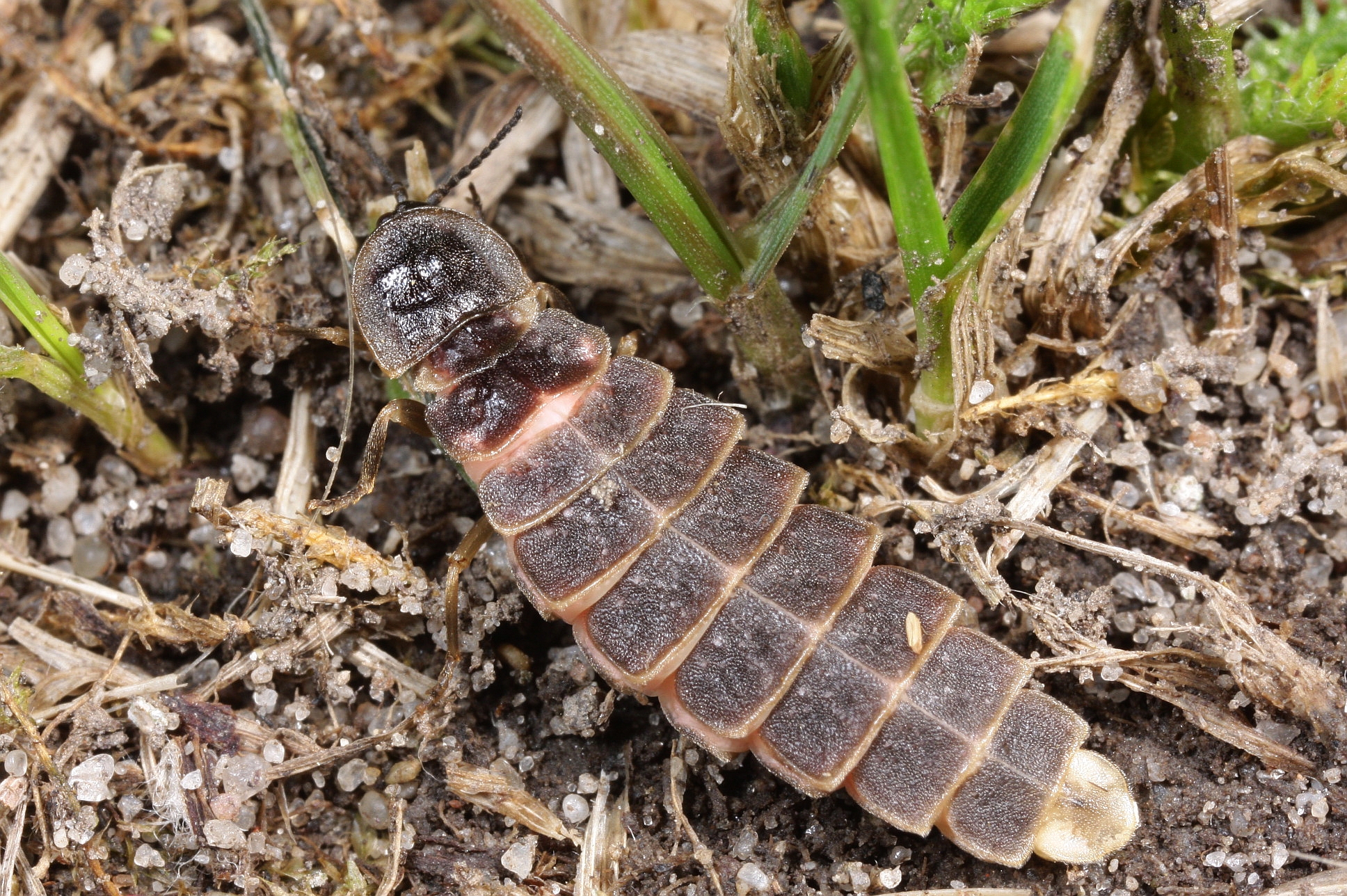 Larve des Großen Leuchtkäfers, Biwatsch-Teichgruppe bei Königswartha, Mai 2016