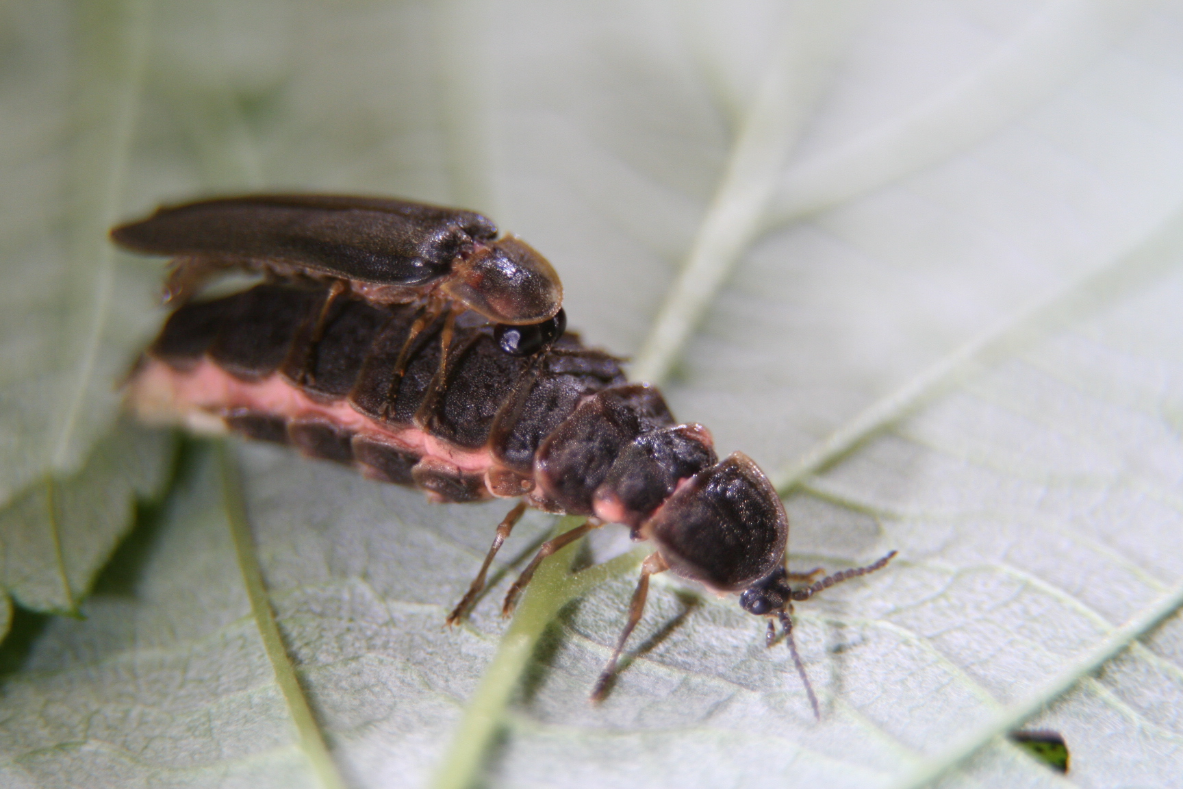 Hinterleib (Abdomen): Beim Männchen sind die larvalen Leuchtorgane vorhanden, aber durch Pigmente verdeckt, beim Weibchen neben den larvalen Leuchtorganen bauchseitig zwei imaginale Leuchtorgane im 6. und 7. Segment.