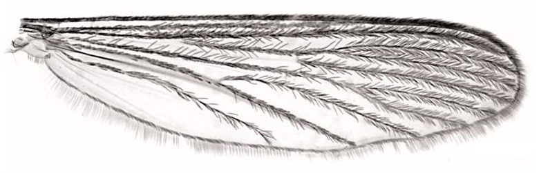 Hinterleib: oben dunkel beschuppt. Im männlichen Genital inseriert der Gonostylus an der Spitze des Gonocoxites. Paraprokt apikal mit einer Krone aus spitzen Dornen (wie bei Culex pipiens). Gonocoxite außen mit Schuppen. Subapikallobus mit einfachen, kaum verbreiterten Dornen.