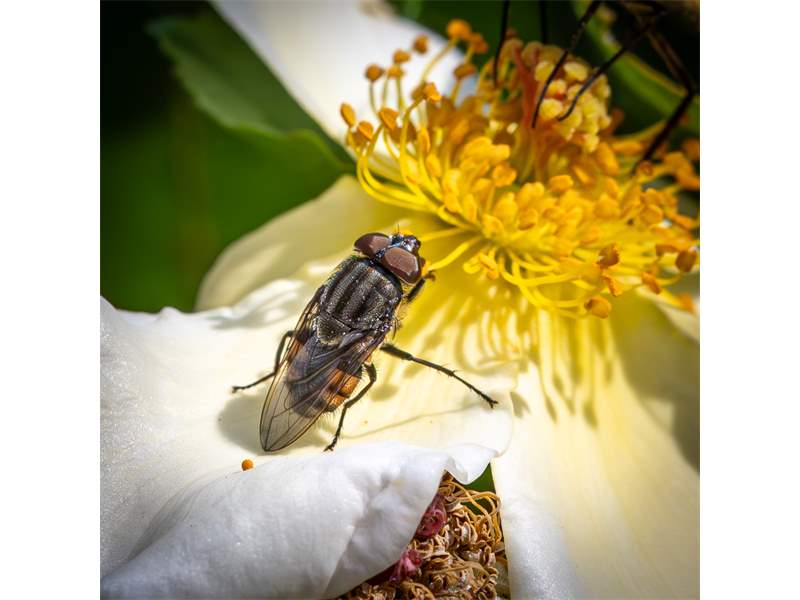 Die Weibchen ernähren sich bei Pferden und Rindern von Nasensekret, Speichel und Tränen, wobei kleine Zähnchen auf dem Saugrüssel Verletzungen im Augenbereich der Wirtstiere herbeiführen und so den Tränenfluss anregen. An bereits vorhandenen Wunden nehmen sie auch Blut auf. Die Männchen ernähren sich von Blütennektar. Die Eiablage erfolgt in den frischen Kot von Pferden, Rindern und Schafen. Schon nach einem Tag schlüpfen die Larven, die sich über drei Larvalstadien im Kot entwickeln. Die ausgewachsenen Larven wandern in den Boden ab, um sich dort zu verpuppen.