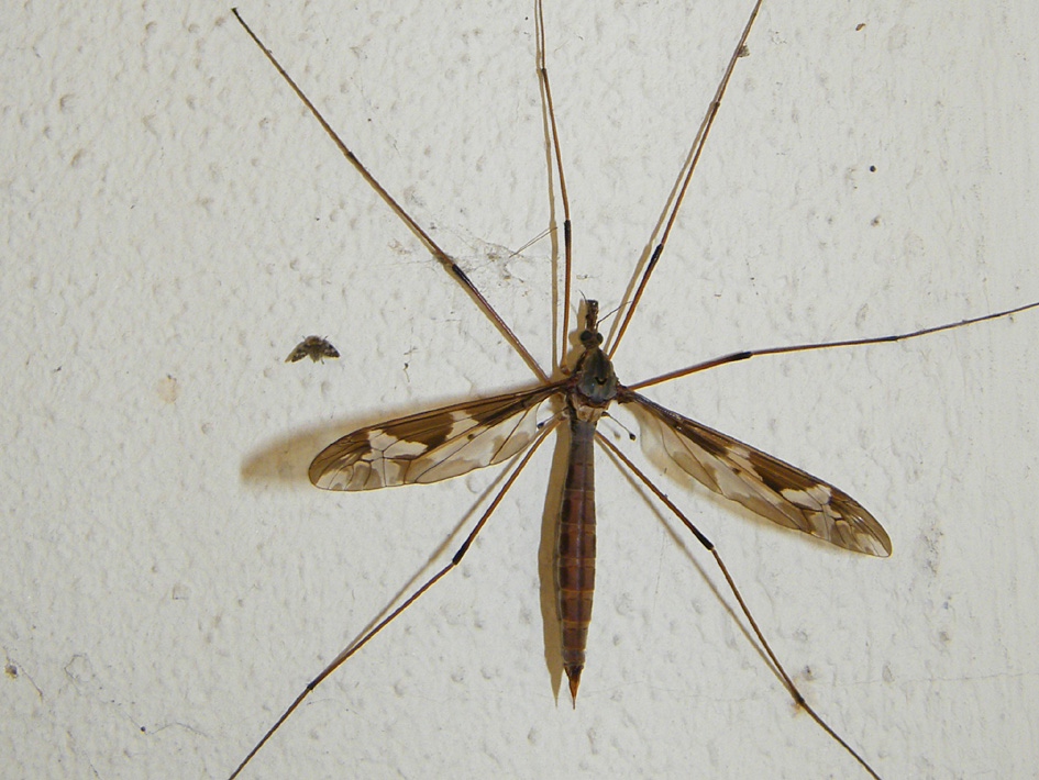 Ähnliche Arten: Mit anderen einheimischen Mückenarten kann Tipula maxima auf Grund ihrer Größe und der markanten Flügelzeichnung nicht verwechselt werden. Ein Komplex eng verwandter und sehr ähnlicher Arten ist in Südeuropa, auf dem Balkan, im Kaukasus bis zum Kaspischen Meer und Nordiran anzutreffen. Einige Arten der Gattung Pedicia (Pediciidae) haben auf Grund ihrer Größe und der braunen Flügelzeichnung eine gewisse Ähnlichkeit, doch ist deren dunkelbraune Zeichnung auf den Flügeln eher linienhaft ausgebildet.