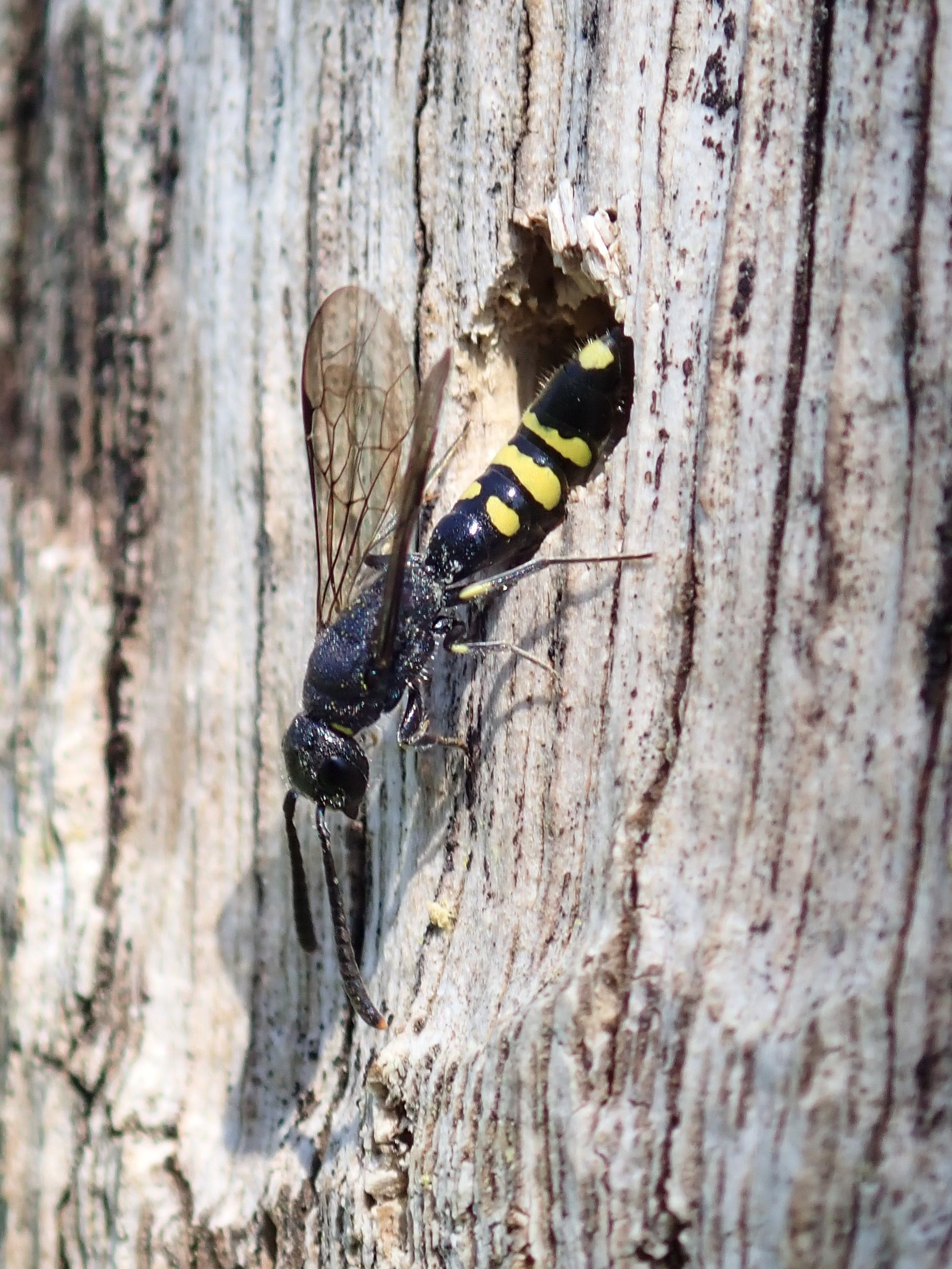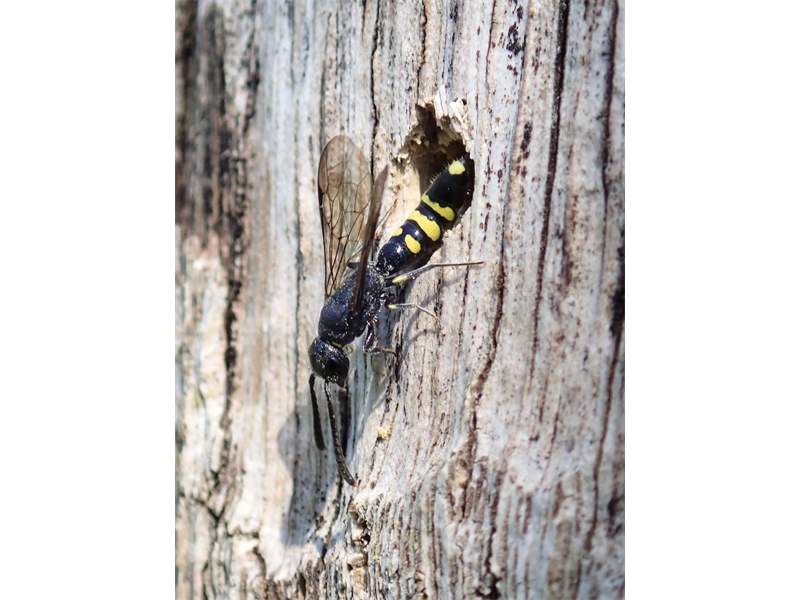 Monosapyga clavicornis im Bereich einer Nisthilfe für Wildbienen, Großdrebnitz, 2009