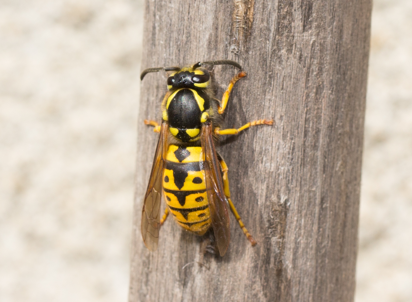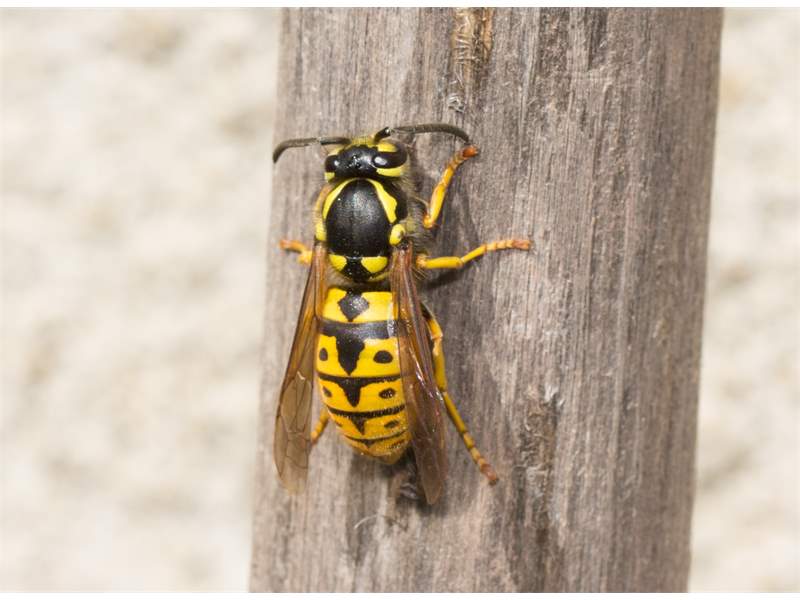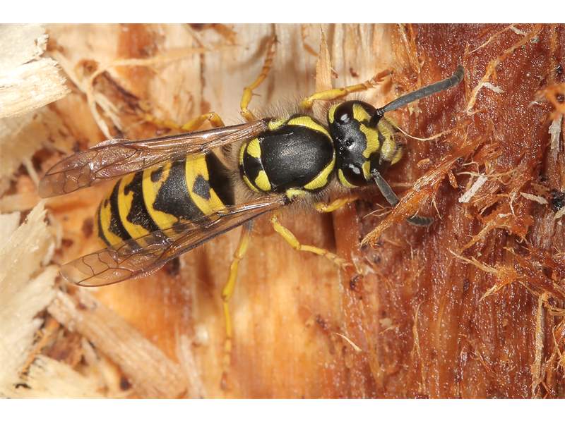 Die Deutsche Wespe ist neben der Gemeinen Wespe in unserer Region die häufigste Art der Faltenwespen (Vespidae).