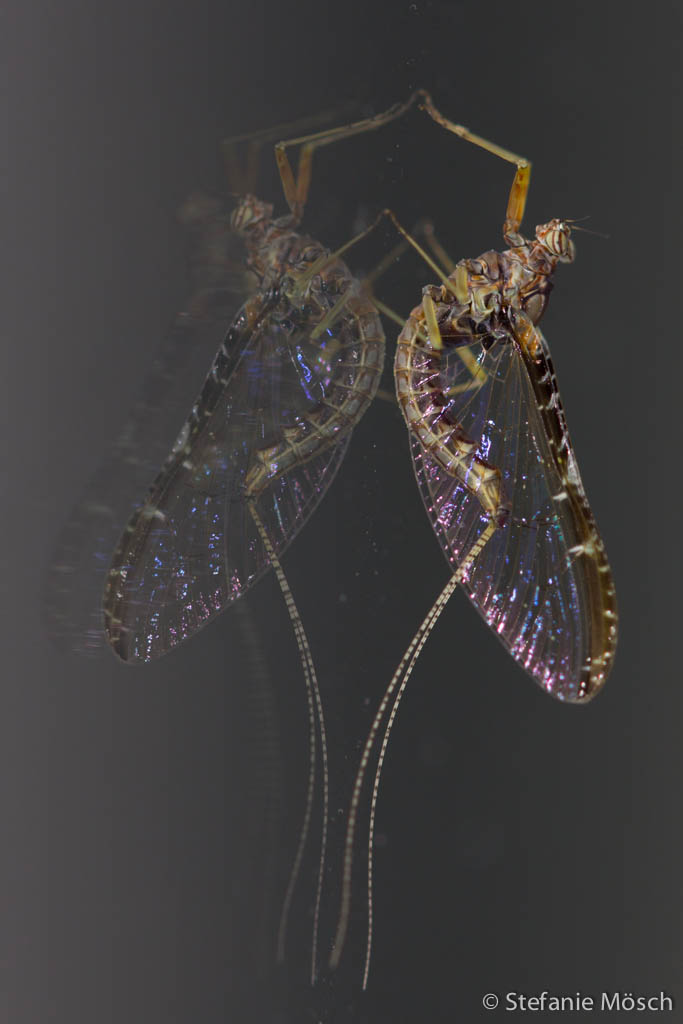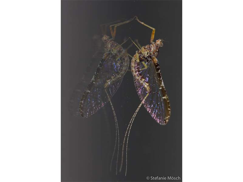 Die Männchen haben nach dem Stadium der Subimago noch eine Lebenserwartung von 4–5 Tagen und sterben kurz nach der Paarung, die Weibchen haben hier noch eine Lebenserwartung von 10–14 Tagen und sterben kurz nach der Eiablage. Unter künstlichen Bedingungen, wenn die Weibchen unverpaart bleiben, erreichen sie eine Lebenserwartung von 24 bis 46 Tagen (Oehme 1972). Aus der längeren Lebenserwartung der Weibchen könnte es sich erklären, warum vor allem diese beobachtet werden.