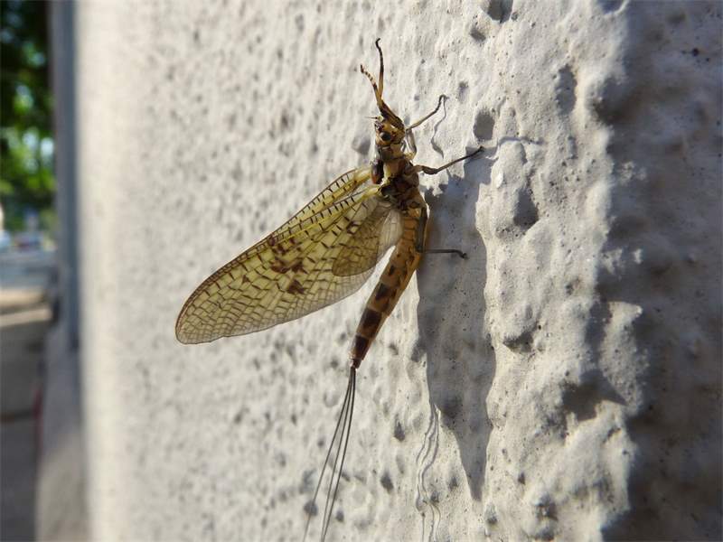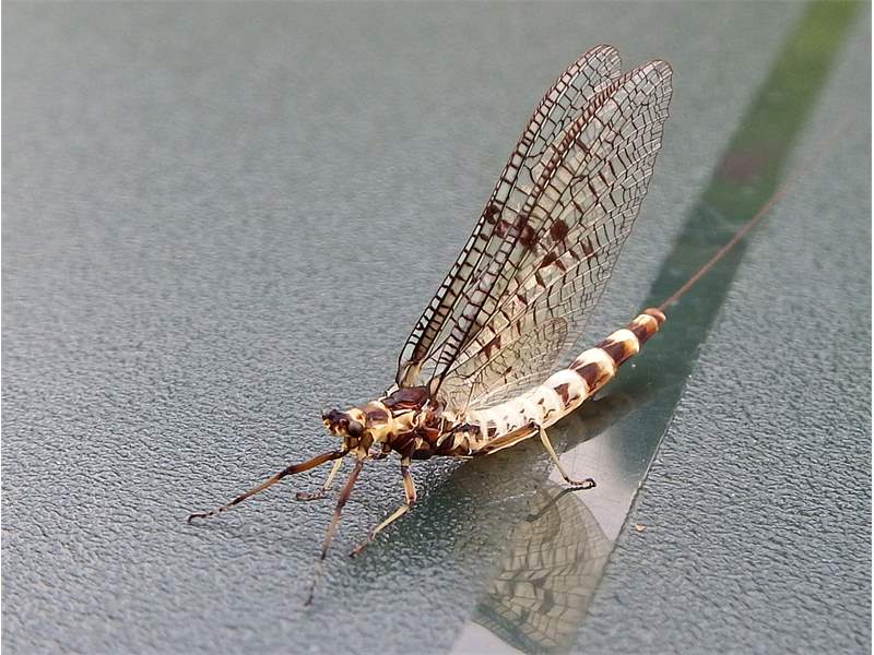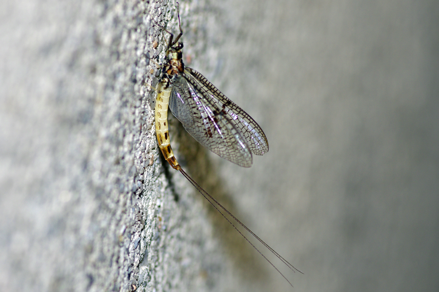 Ähnliche Art: Ephemera vulgata mit Zeichnung auf allen Hinterleibssegmenten.