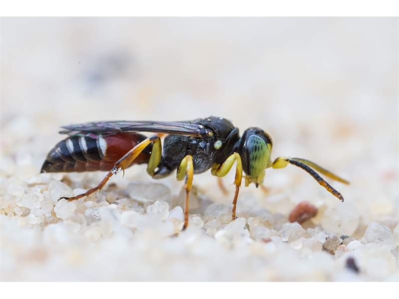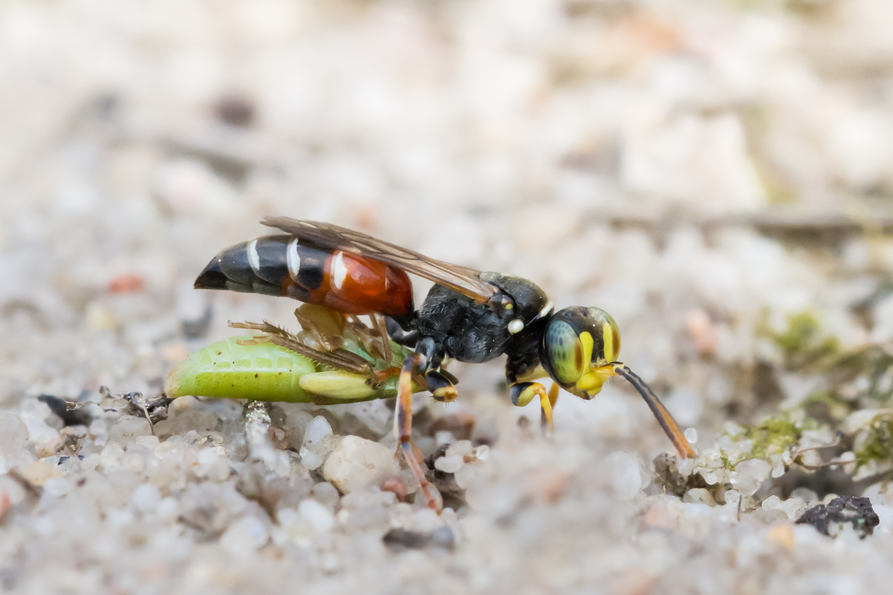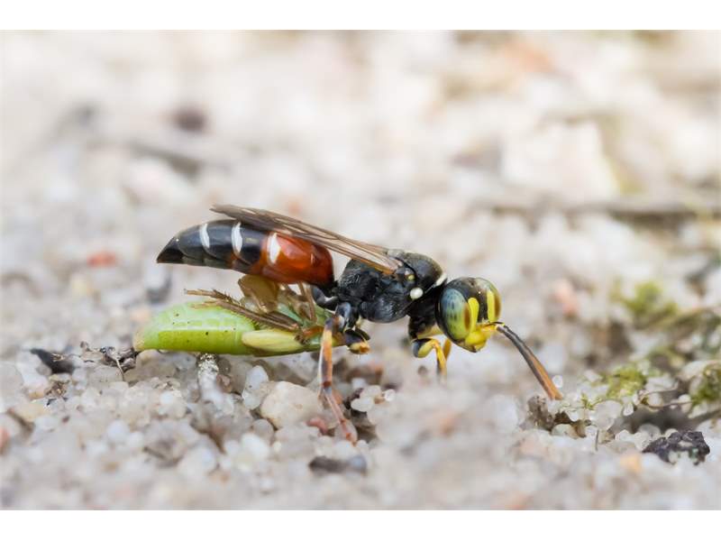 Das Nest wird vom Weibchen in lockerem Sandboden angelegt und besteht aus einer Einzelzelle zu der ein ca. 10 cm langer Gang führt. Die Larven werden mit Zikaden aus den Familien Issidae und Cicadellidae versorgt. Als Nektarquelle für die Wespen werden die Blüten von Jasione, Daucus, Thymus und Achillea genutzt. Als wichtigster Parasitoid der nordostsächsischen Populationen gilt Nysson maculosus, dessen Häufigkeit hier mit der seines Wirtes korrespondiert. Außerdem liegen mehrere Beobachtungen des Eindringens in Wirtsnester vor.