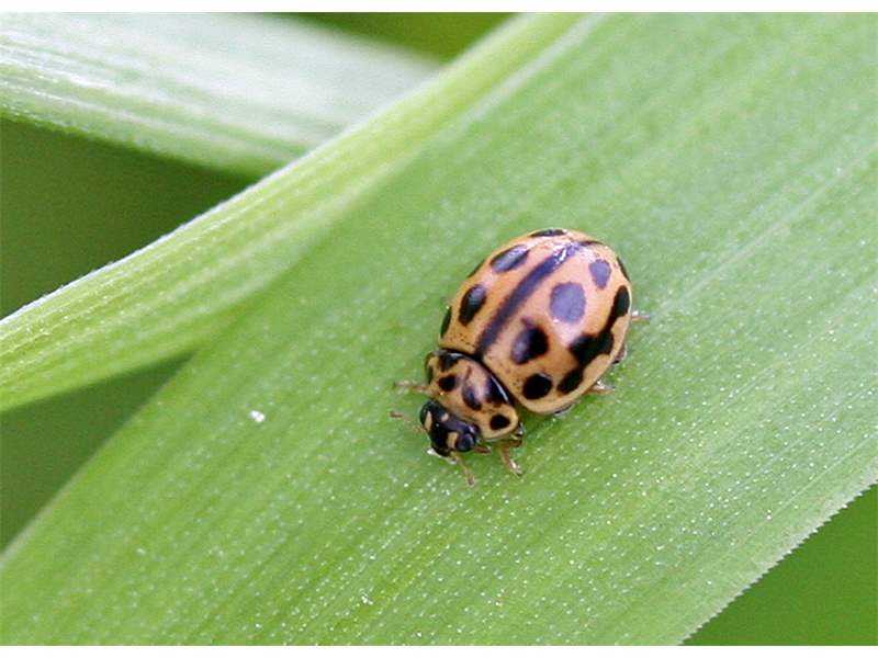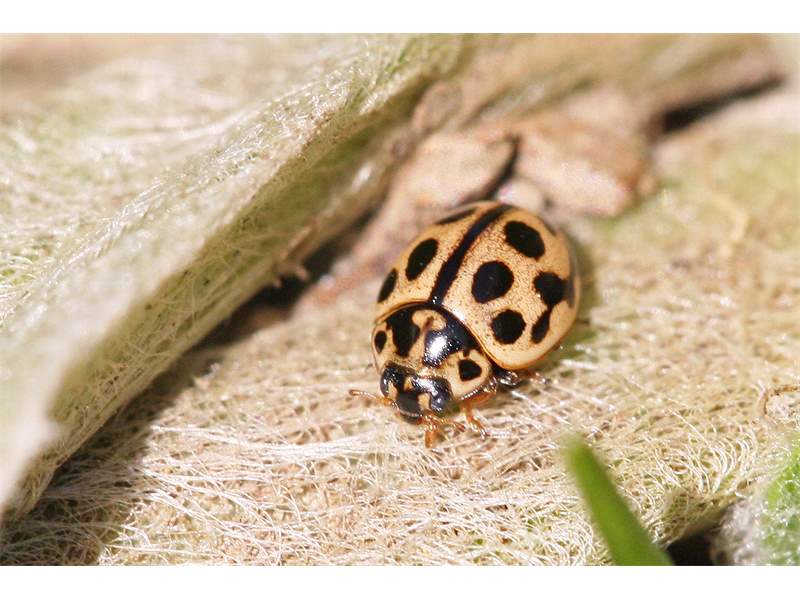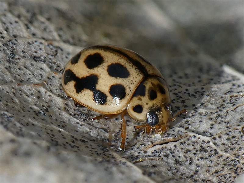 Ähnliche Art: Beim Pappelmarienkäfer (Oenopia conglobata) der Halsschild stets in weißlicher Grundfarbe und die Deckflügel mit je 8 schwarzen Punkten, die in Querreihen zu 2-2-1-2-1 Punkten angeordnet sind.