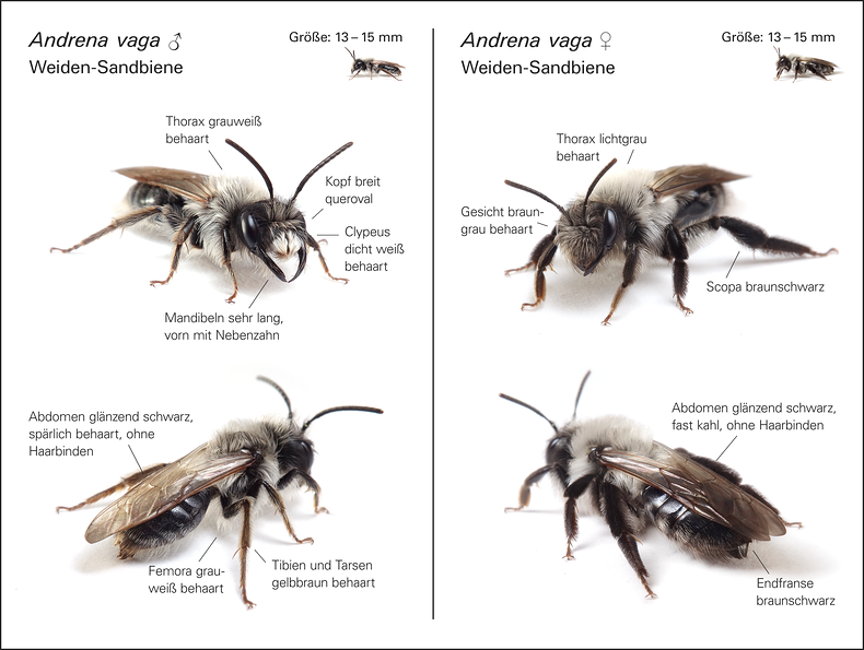 Diagnostische Merkmale der Weiden-Sandbiene Andrena vaga.