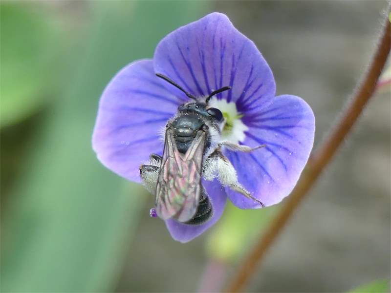 Für Pollen streng auf Ehrenpreis (Veronica) spezialisiert, mit besonderer Vorliebe für Gamander-Ehrenpreis (Veronica chamaedrys). Die Nester werden zum Teil in kleinen Kolonien im Boden angelegt.