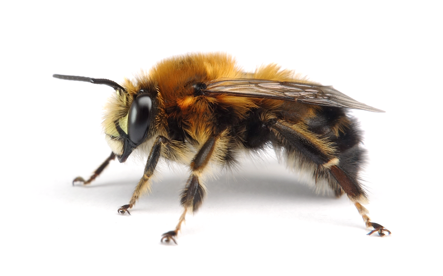 fuchsrot behaartes Männchen der Gebänderten Pelzbiene, Dresden, Ende April 2020