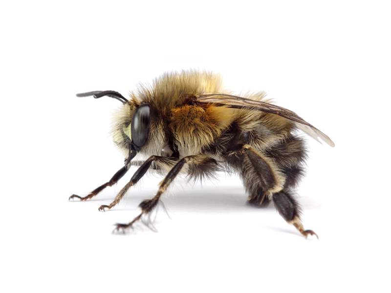 Männchen: Behaarung ähnlich der hellen Form des Weibchens. Die ersten vier Tarsenglieder des Mittelbeines auf der hinteren Seite mit außerordentlich langen schwarzen Haarfransen, dadurch unverwechselbar.