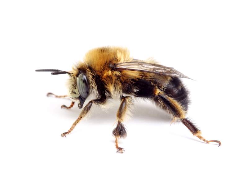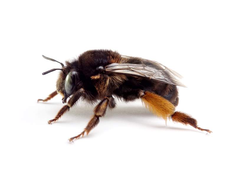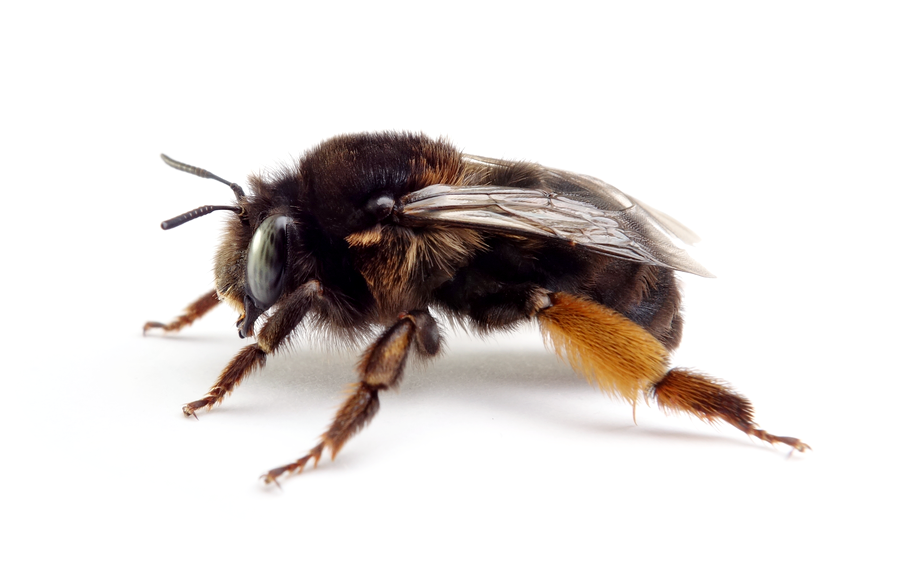 Anthophora aestivalis trägt dichte schwarze Haarfransen am Krallenglied des Mittelbeins.