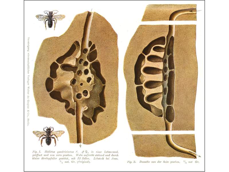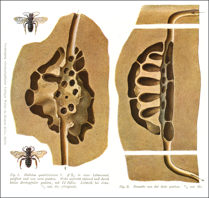 Grabwabennest von Halictus quadricinctus. Aus Friese 1923, Die europäischen Bienen, Berlin & Leipzig, Tafel 3