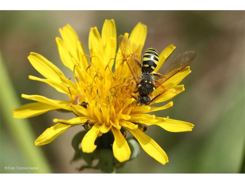 Männchen der Feld-Wespenbiene an einem Löwenzahn, gefunden auf dem Raschützberg 2013 (© Tommy Kästner)( Bild vergrößern)