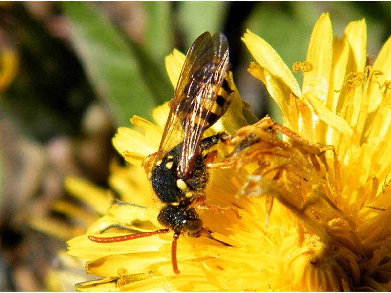 Männchen der Feld-Wespenbiene an einem Löwenzahn, gefunden auf dem Raschützberg 2013