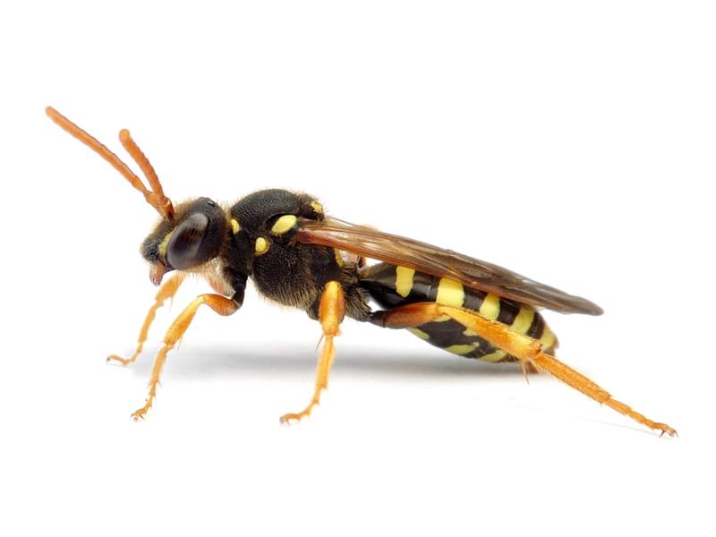 Kuckucksbiene der Sandbienen Andrena cineraria, Andrena nigroaenea, Andrena nitida, Andrena thoracica und Andrena tibialis.