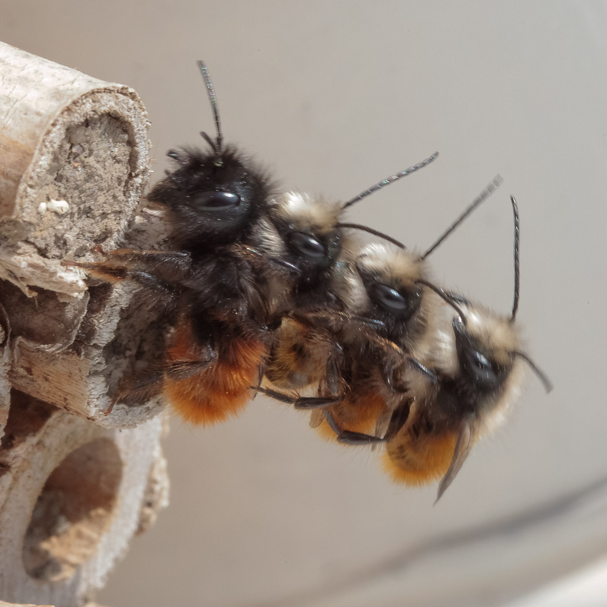 Gehörnte Mauerbiene, Paarungszeit, im März 2010 in Leipzig.