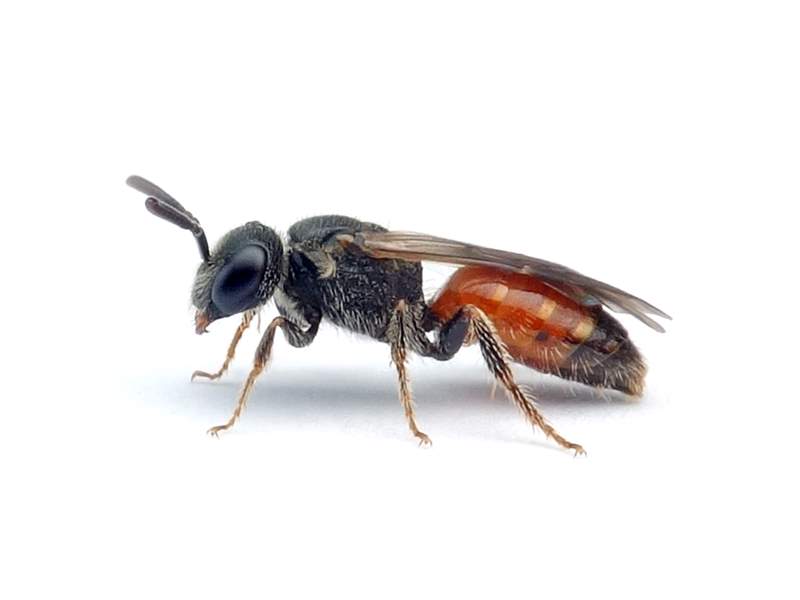 Brutparasit bei verschiedenen Schmalbienen, wie Lasioglossum pauxillum, Lasioglossum politum, Lasioglossum punctatissimum und vermutlich auch Lasioglossum morio und Lasioglossum sexstrigatum; Hauptwirt ist aber Lasioglossum nitidiusculum