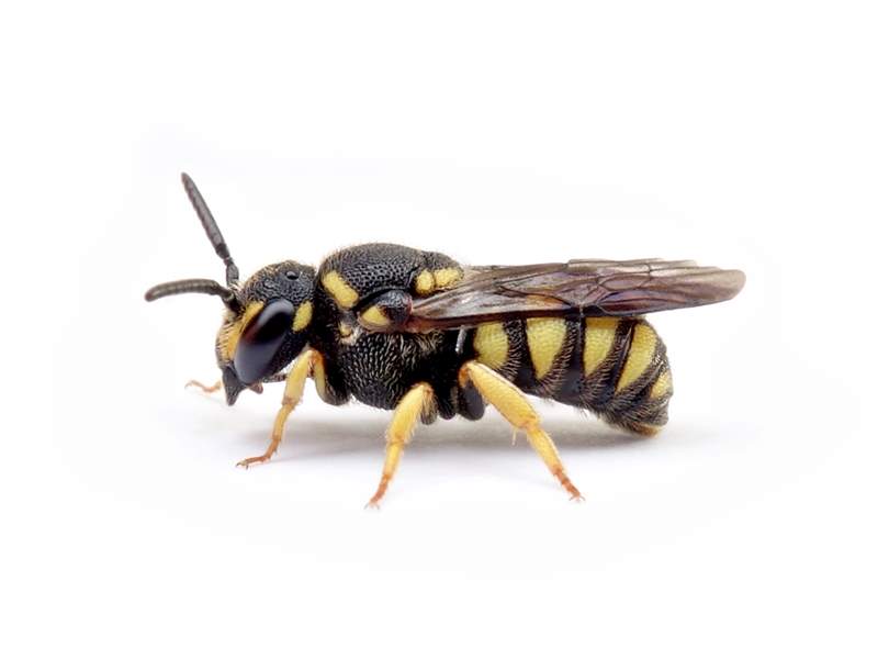 Kuckucksbiene der Zwergharzbiene Anthidiellum strigatum. Als weiterer Wirt wird die Östlichen Zwergwollbiene Pseudoanthidium nanum vermutet.
