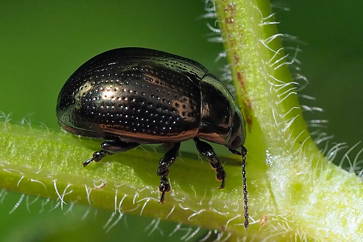 Thorax: Halsschild mit deutlich abgesetzten Seitenkanten. Flügeldecken (Elytren) mit nach hinten verlaufenden Reihen winziger Löcher.