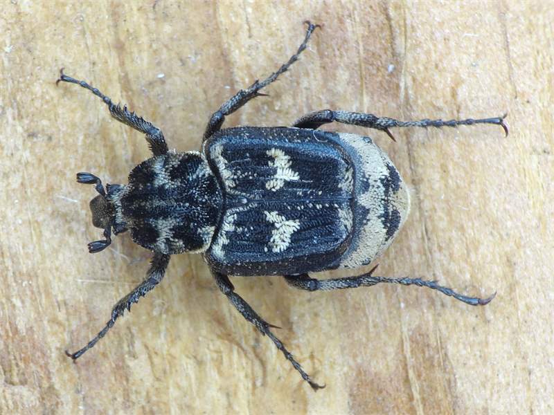 Ähnliche Arten: Die übrigen einheimischen kleinen, dunkel gefärbten Blatthornkäferarten besitzen entweder mehrere kleine helle Flecken auf den Flügeldecken (vergleiche Oxythyrea funesta) oder gar keine hellen Flecken.