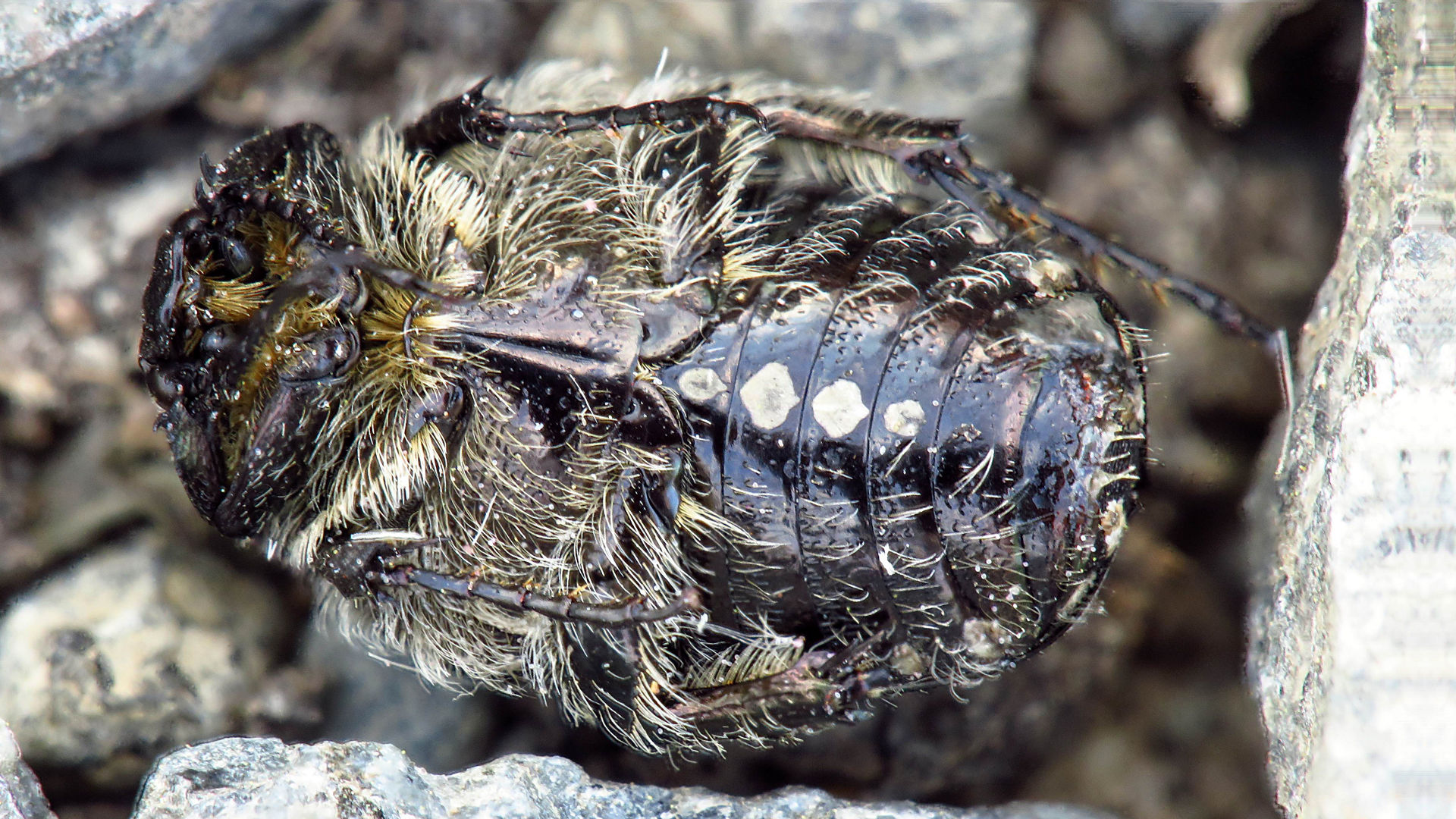 Unterseite des Trauer-Rosenkäfers in der Gemarkung Hohenprießnitz, Mittelschlag, Juli 2014