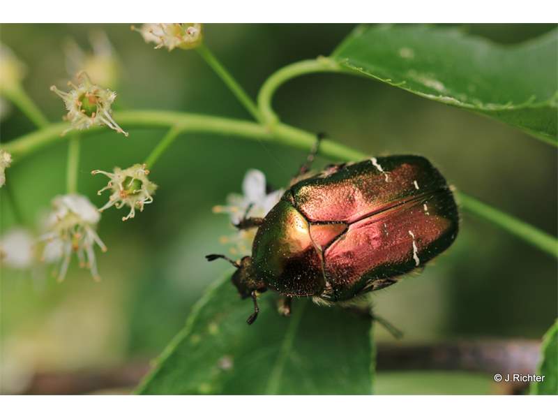 Goldglänzender Rosenkäfer auf Traubenkirsche 04.05.2018 bei Lohsa Tagebau Rekultivierungsfläche nördl. Ratzener Teiche (© Jürgen Richter)( Bild vergrößern)