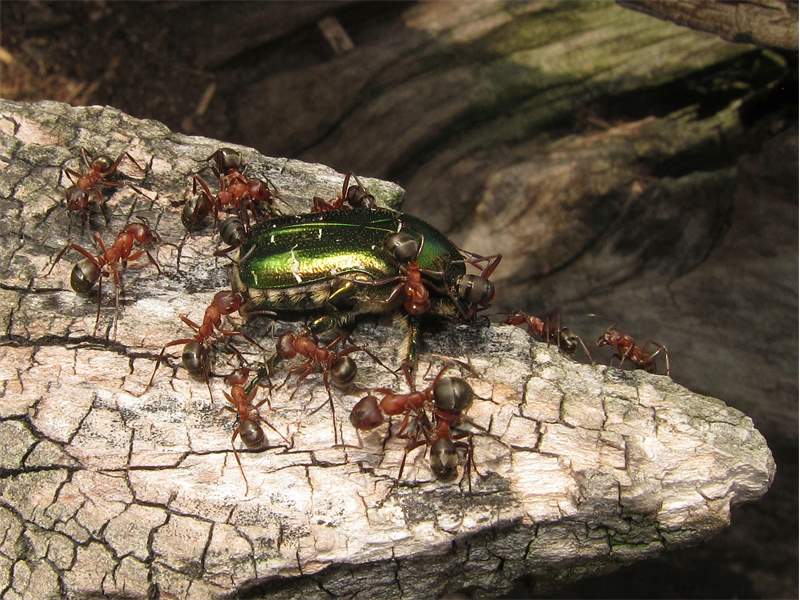 Rosenkäfer, von Ameisen belagert, bei Großwig, 2013 (© Angela Kühne)( Bild vergrößern)