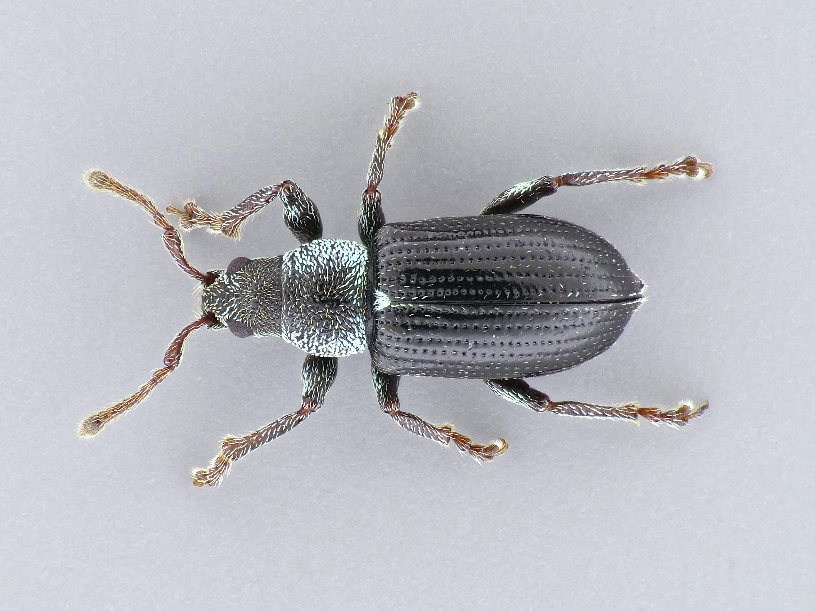 Käfer 3–5 mm lang. Fühler deutlich gekniet, bräunlich oder rotbraun. Auffallend sind das zumindest an den Seiten oder gänzlich mit Schuppenhaaren besetzte Halsschild und Schildchen; Schulterbeulen vorhanden. Flügeldecken dunkel, kahl und glänzend erscheinend; auf den Flügeldeckenzwischenräumen je eine Reihe dünner, heller Härchen sowie auf den Punkten der Flügeldeckenstreifen je ein kurzes Haar. Beine bräunlich oder rotbraun; Schenkel ungezähnt.