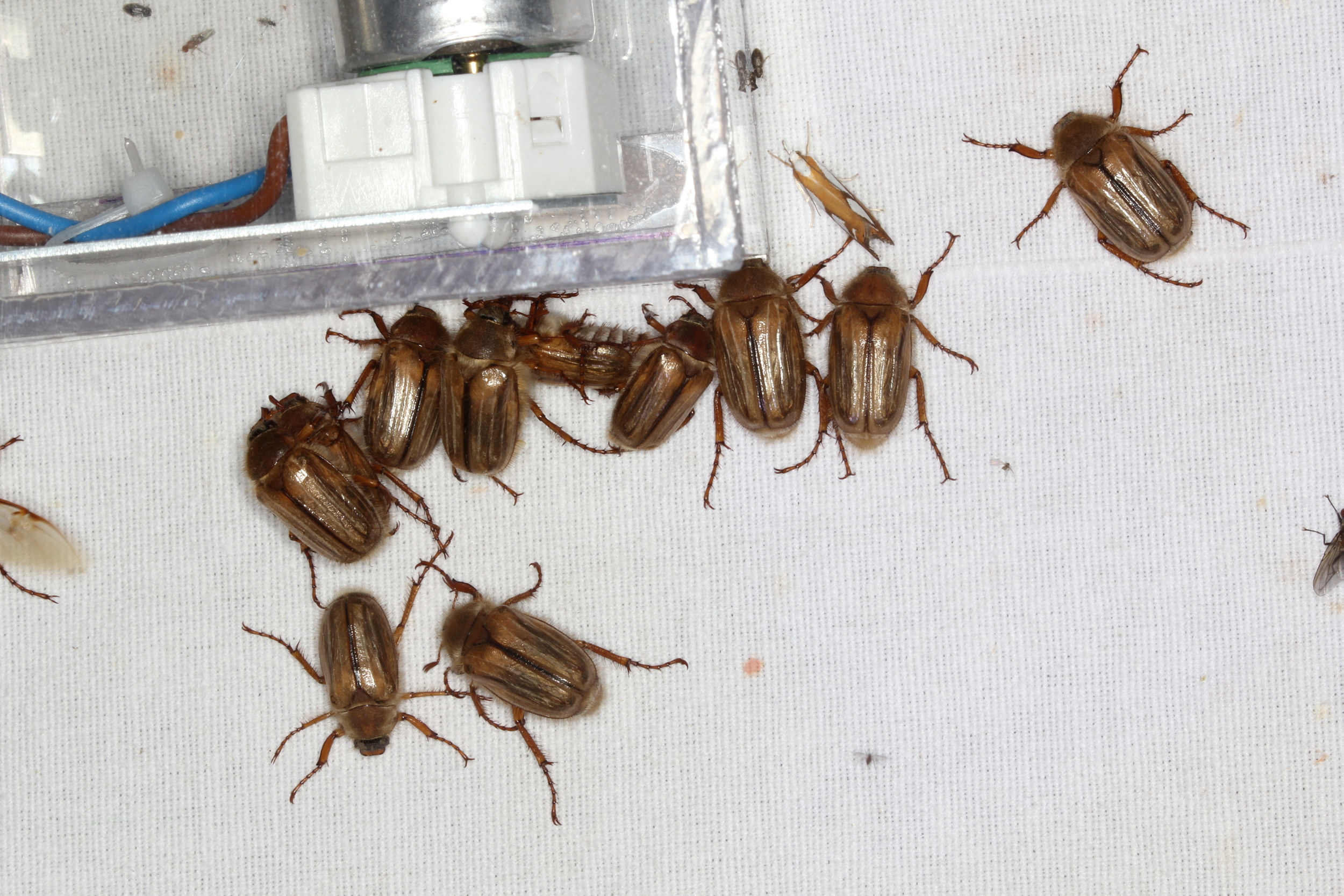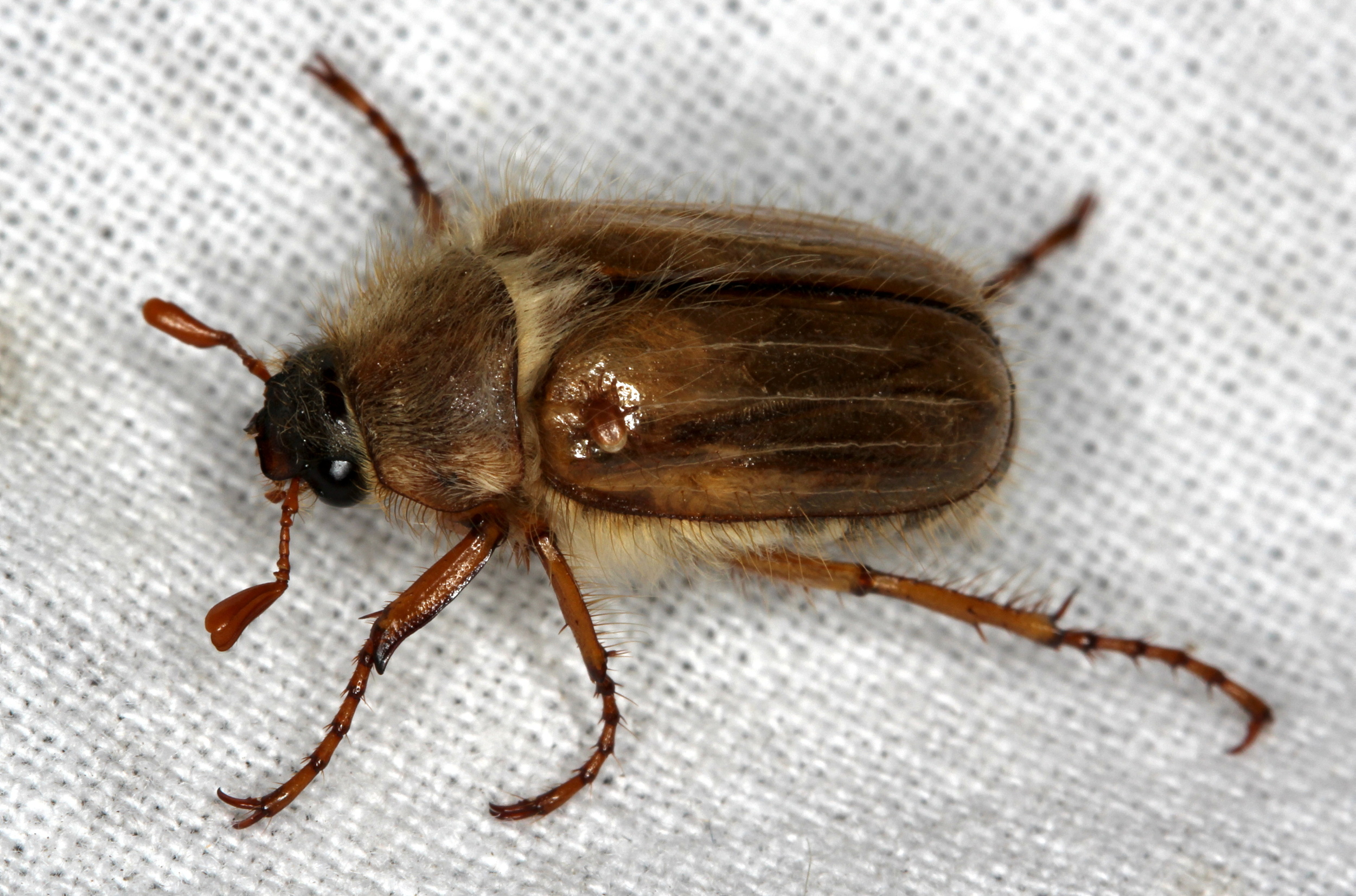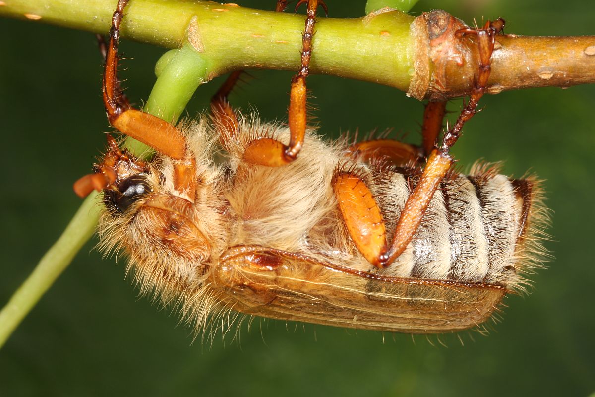 Junikäfer, Gerippter Brachkäfer (Amphimallon solstitiale) in Neustadt/Spree (Deutschland, Sachsen, Landkreis Bautzen) am 28.06.2013.