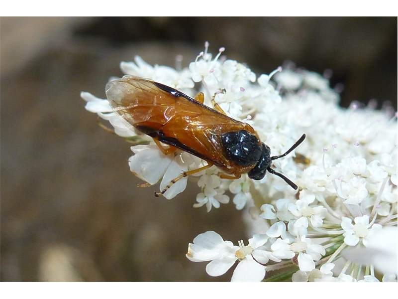 Die Weibchen legen 16–18 Eier in Eier Reihe auf der Unterseite der Laubblätter von Rosen (Rosa spp.). Es entwickeln sich zwei bis drei überlappende Generationen pro Jahr (Pschorn-Walcher & Altenhofer 2000). Die Adulten ernähren sich vom Pollen von Doldenblütlern (Apiaceae).