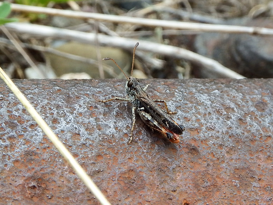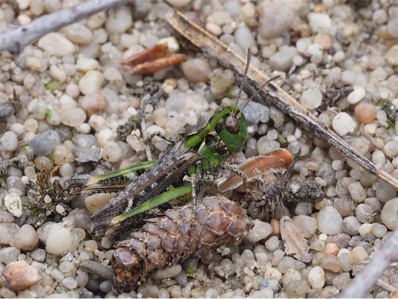 Eine männliche Gefleckte Keulenschrecke in der Braunkohletagebaufolgelandschaft, 16.06.2010