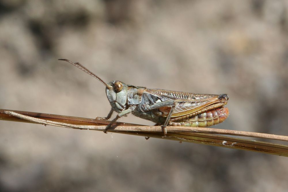 Ähnliche Art: Bei den Weibchen des Rotleibigen Grashüpfers ( Omocestus haemorrhoidalis) ist der Kopf deutlich kürzer als der Halsschild, bei den Weibchen des kleinen Weidegrashüpfers ( Stenobothrus stigmaticus) ist der Halsschild-Seitenkiel nur schwach gebogen. Die Rote Keulenschrecke ( Gomphocerippus rufus) besitzt dunkle Fühlerenden mit weißen Spitzen und der Vorderrand des Vorderflügels ist ausgebuchtet.
