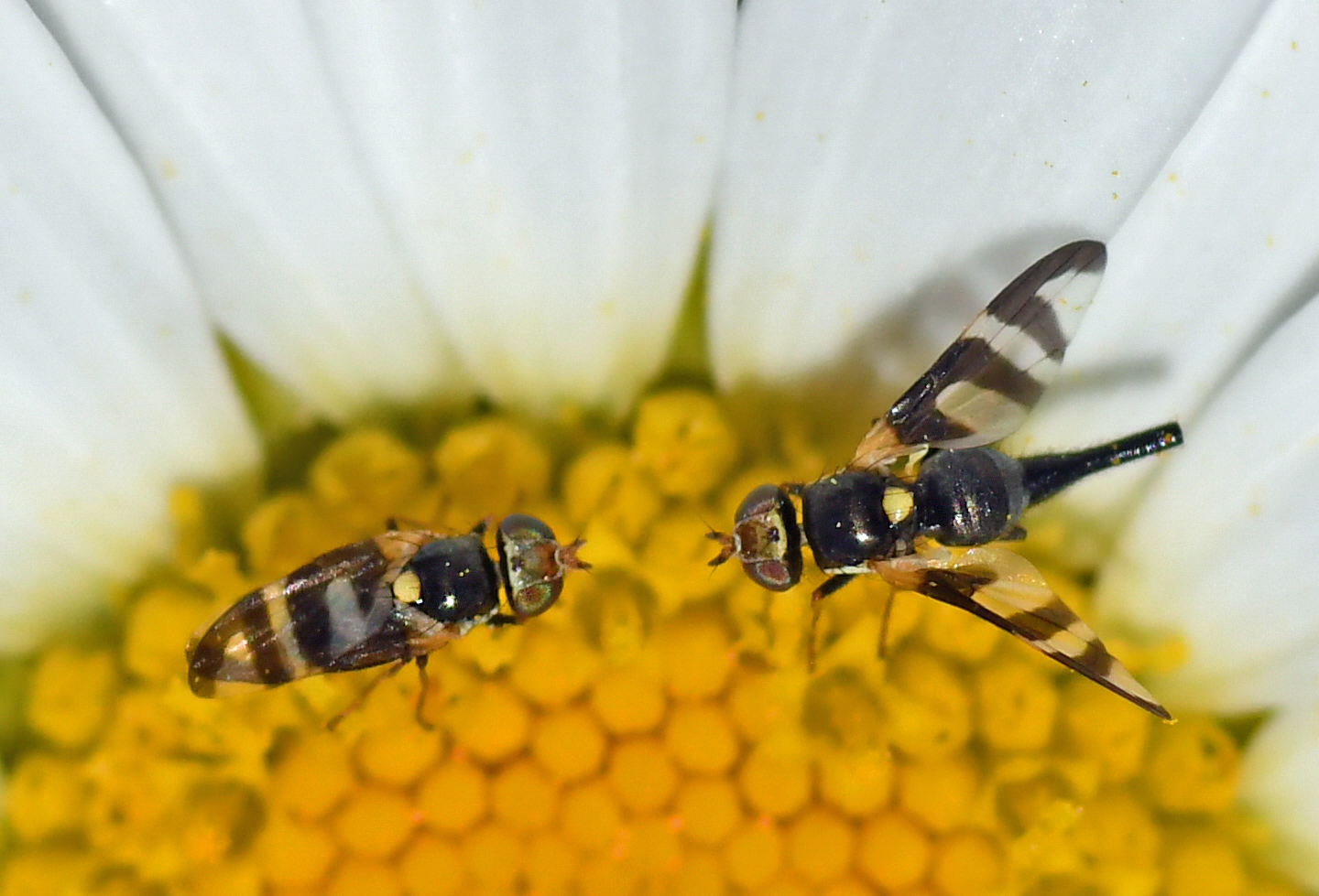 Thorax: Im Flügel subbasales und diskales sowie präapikales und apikales Querband am Vorderrand breit miteinander verbunden (bis Ader r4+5). Scutum oben schwach glänzend. Schenkel (Femora) mit Ausnahme der Spitze schwarz, ohne helle Streifen.