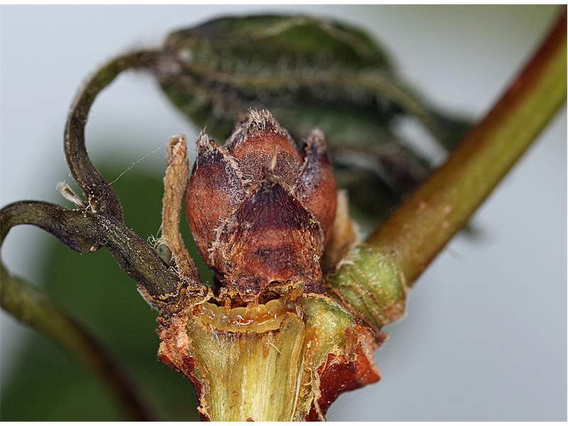 E. louisella bildet zwei Generationen im Jahr. Die Raupen zählen zu den Minierern. Im Herbst werden die Eier an der Basis von Knospen abgelegt und die Raupe bohrt sich ein. Bis zum Frühjahr ist die Knospe ausgehöhlt und stirbt ab. Die Raupe wechselt zu einer weiteren Knospe oder frisst an der Basis der ersten Knospe einen ringförmigen Gang. Dabei schädigt sie manchmal den Austrieb nebenstehender Knospen, die dadurch welken. Selten frisst sich die Raupe in einen der frischen Austriebe. Erwachsen verlässt sie die Fraßstelle und verpuppt sich an Zweigen, dem Stamm oder am Boden. Die Falter dieser Generation schlüpfen im Mai und Juni und legen ihre Eier an den Flügelfrüchten des Feld-Ahorns. Die Raupen minieren einen Gang zur Frucht und fressen darin. Zur Verpuppung verlassen sie die Stelle. Die Falter dieser zweiten Generation fliegen im August und September.