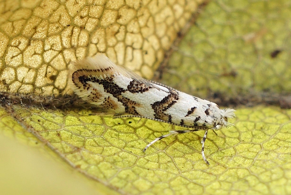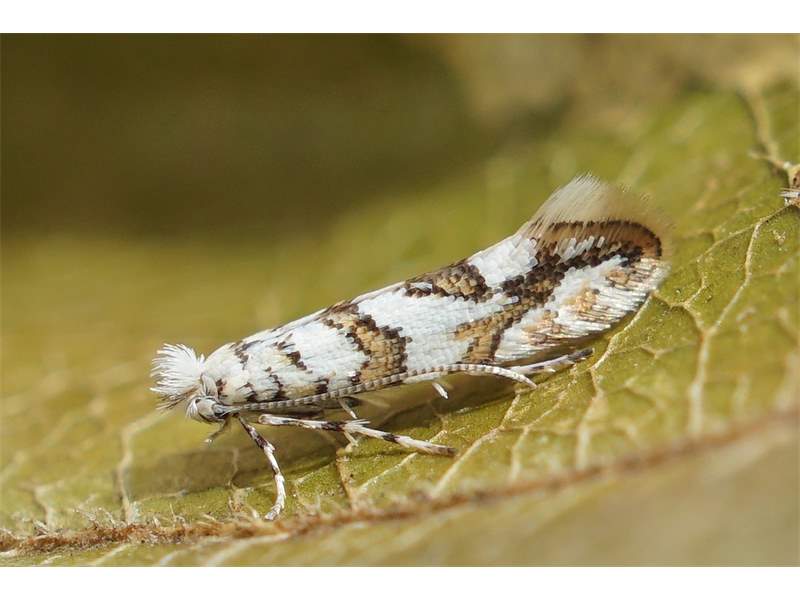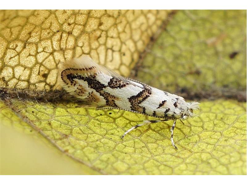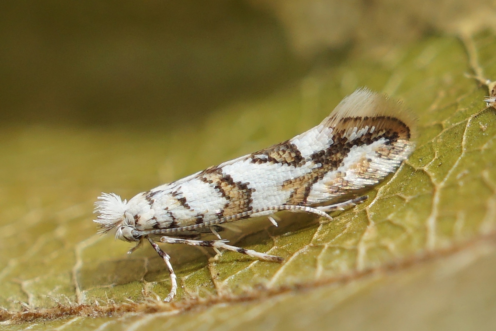 Phyllonorycter acerifoliella, erhalten aus im Herbst 2017 von Feldahorn eingesammelter Faltenminen. Falter am 25. März 2018 bei Zimmertemperatur geschlüpft