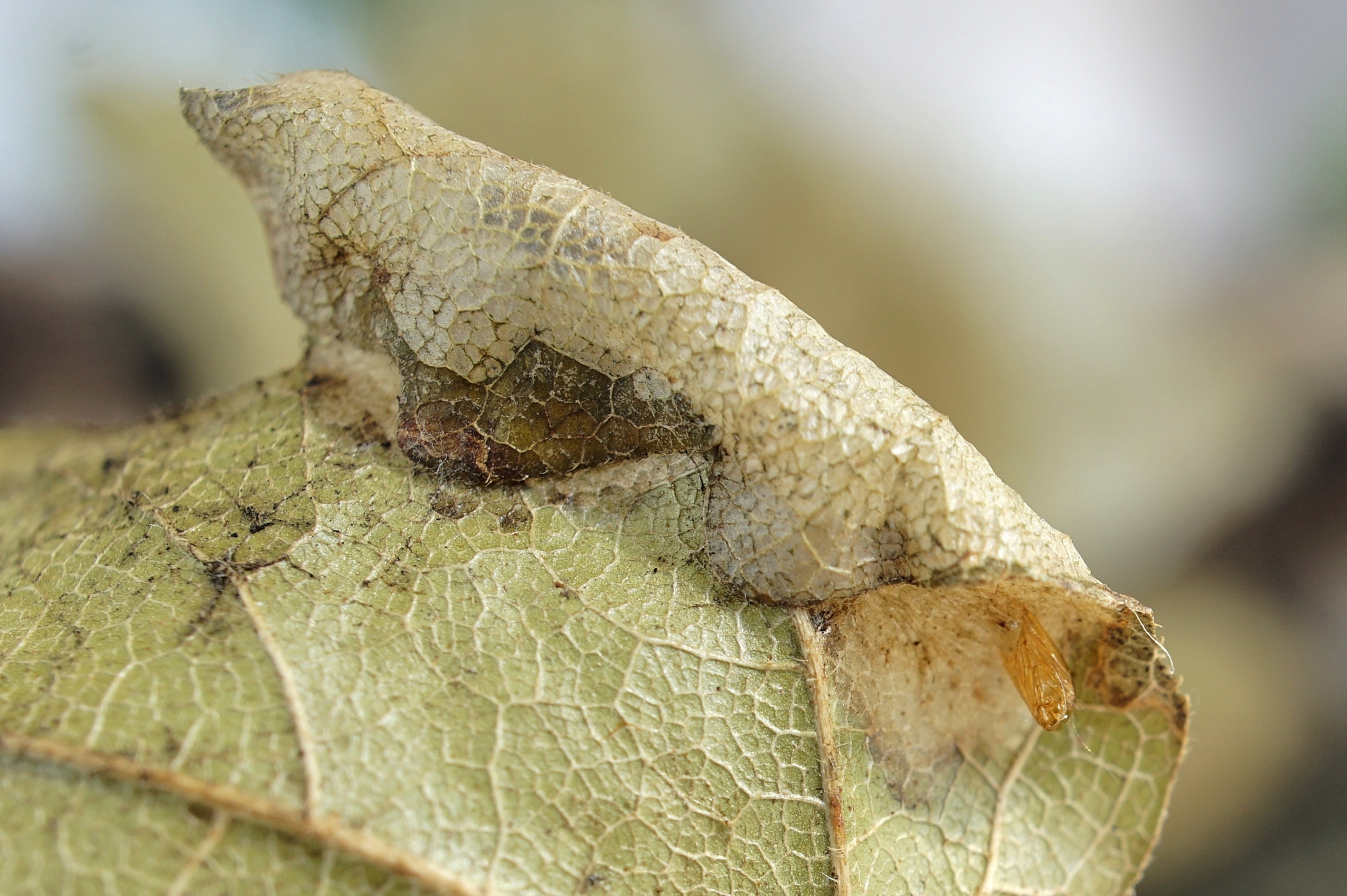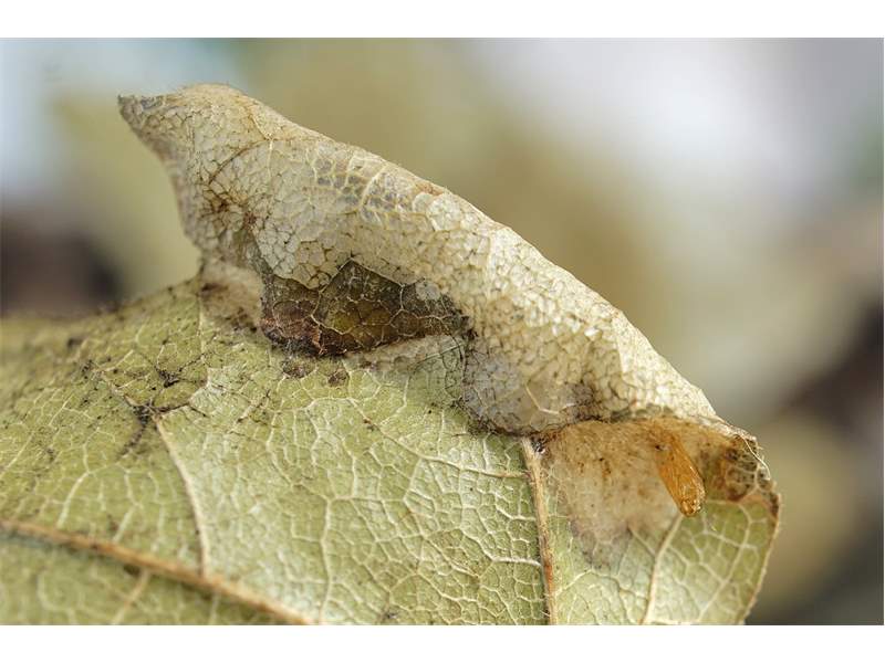 Faltenmine mit Exuvie an Feldahorn aus Bloaschütz, leg. Oktober 2017
