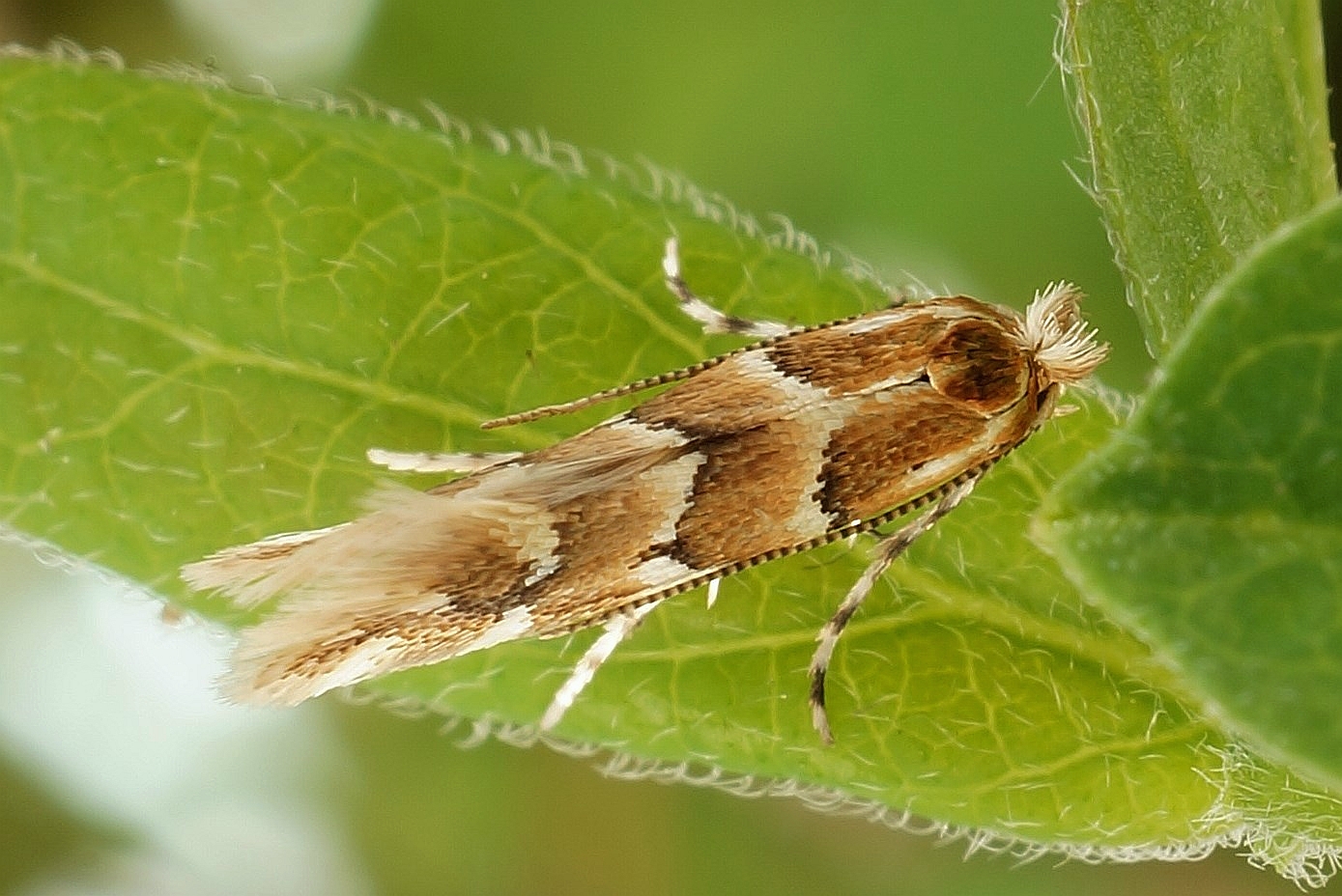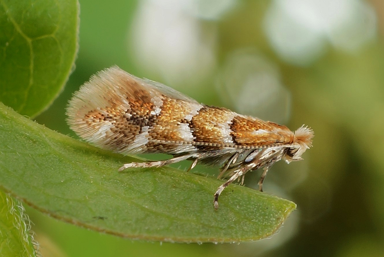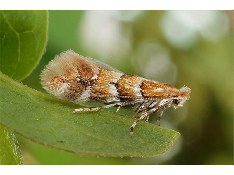 Die Larven erzeugen Faltenminen an den Blättern von Lonicera caprifolium, L. periclymemum, L. xylosteum und Symphoricarpus albus. In der Region Sachsen und Brandenburg vermehrt sich die Art parthenogenetisch: 152 untersuchte Falter waren ausschließlich Weibchen und unter künstlichen Bedingungen, unter denen die Anwesenheit von Männchen ausgeschlossen werden konnte, legte ein Weibchen drei Tage nach dem Schlupf fünf Eier ab, aus denen Larven schlüpften (Nuss & Stübner 2000).