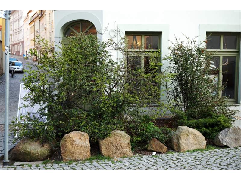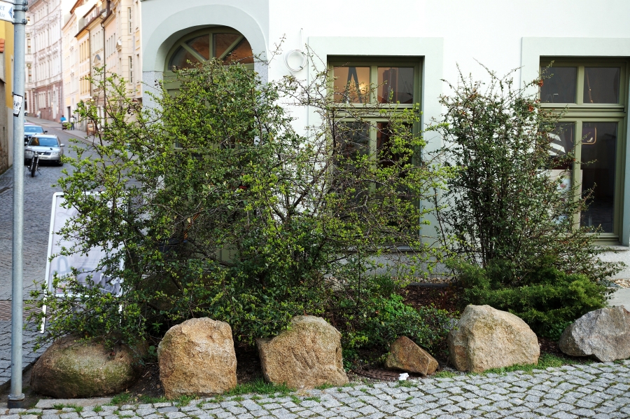 Entwicklungshabitat und Fundort der Blattminen von Phyllonorycter leucographella: Sträucher des Feuerdorns in Bautzen im März 2014 (© Friedmar Graf)( Bild vergrößern)