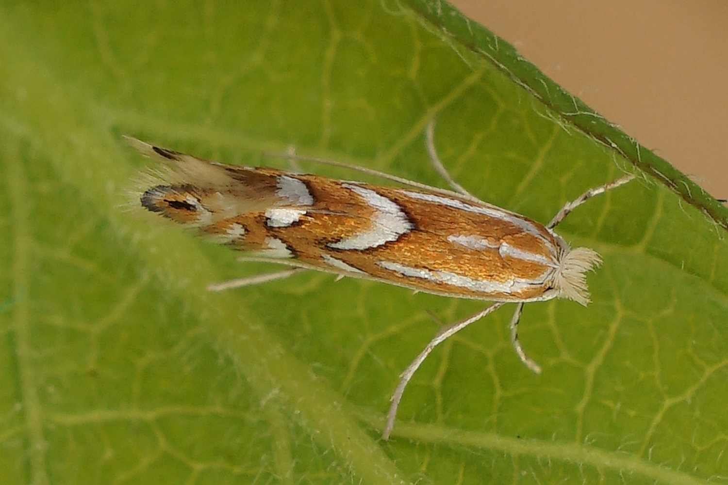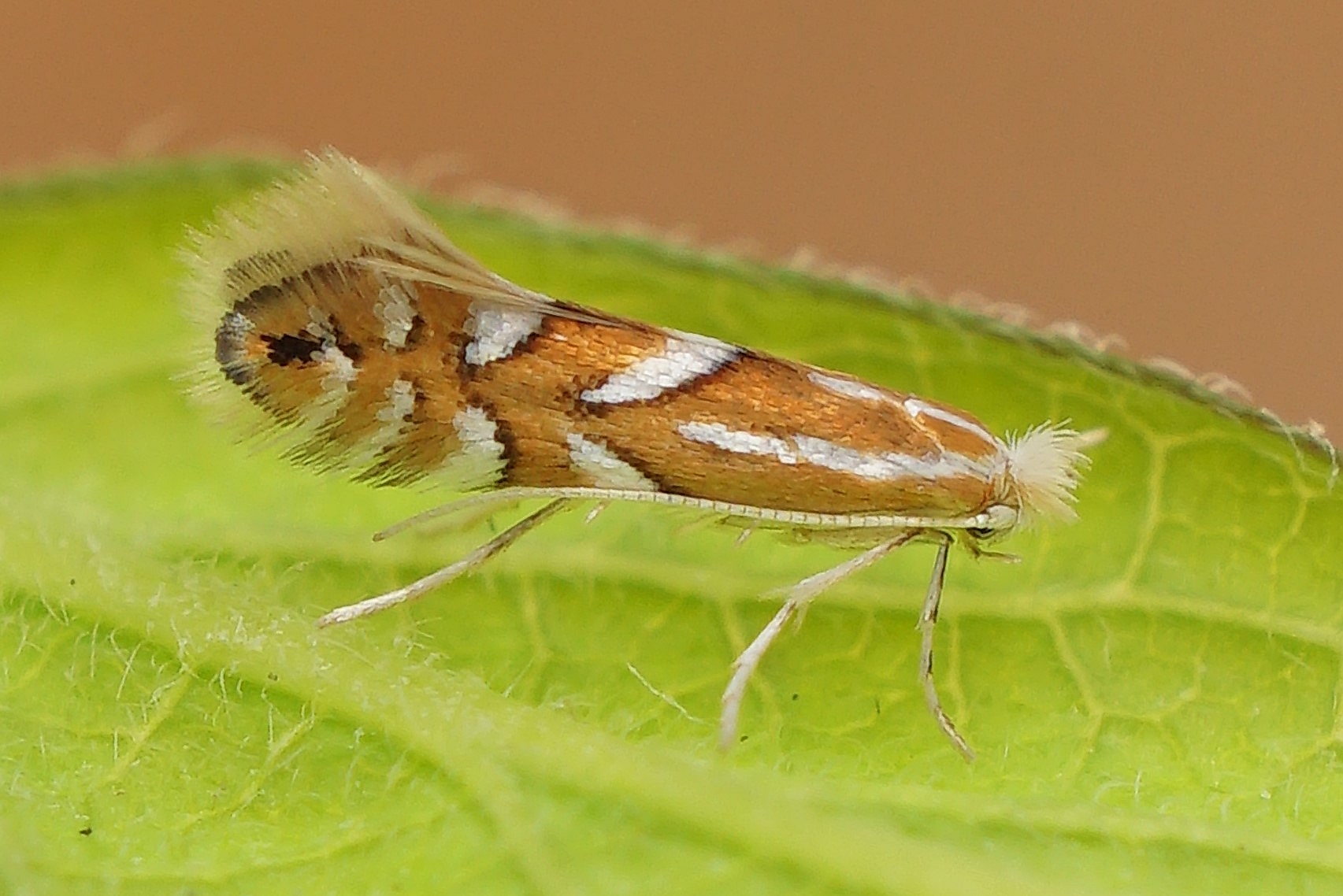 Am 01.02.2016 geschlüpfter Falter von Phyllonorycter maestingella, eingetragen aus Blattminen an trockenem Buchenlaub am 28.12.2015.
