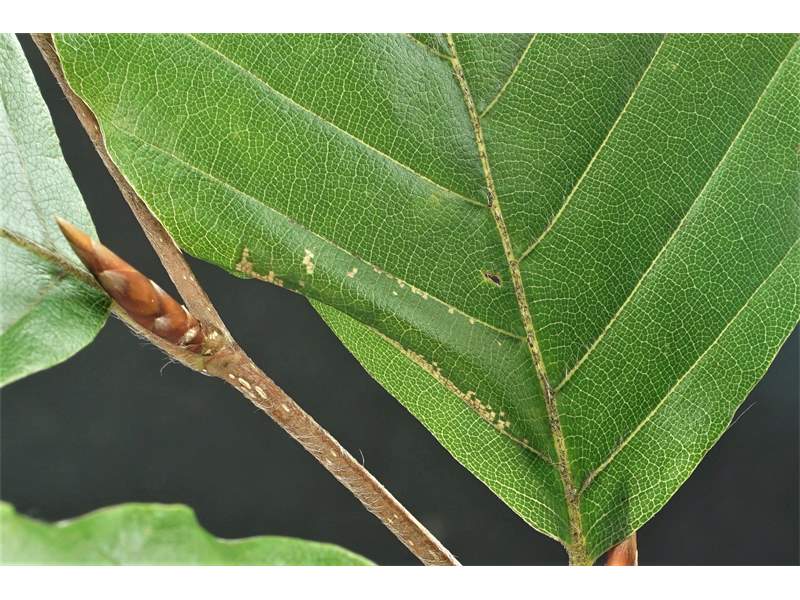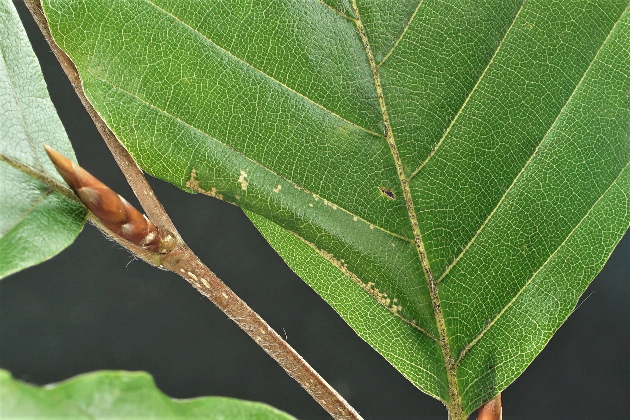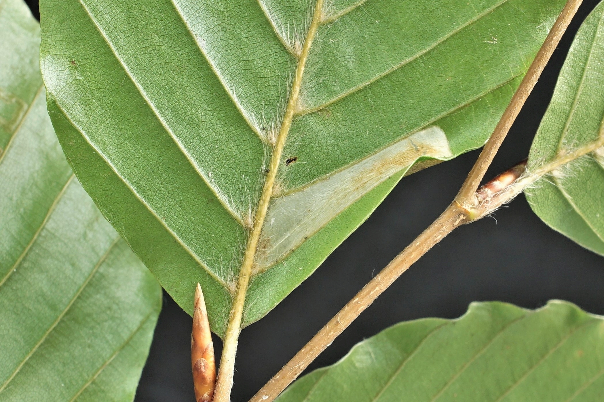 Unterseitige Faltenmine an Rotbuche. Unterseitige Ansicht. Großdubrau, OT Crosta, 19.10.2020.