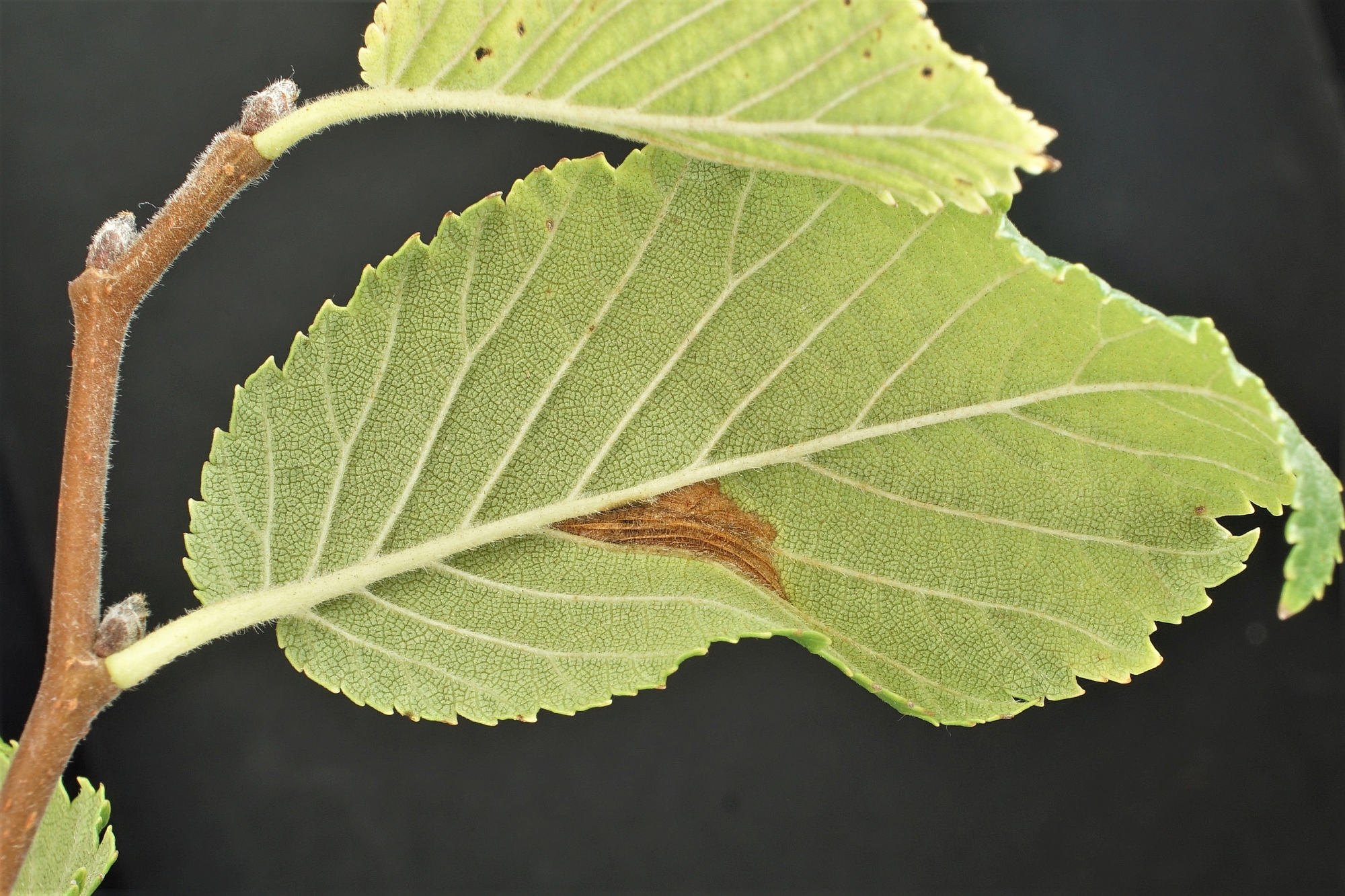 Mine: Faltenmine an der Blattuntersete von Ulmen.